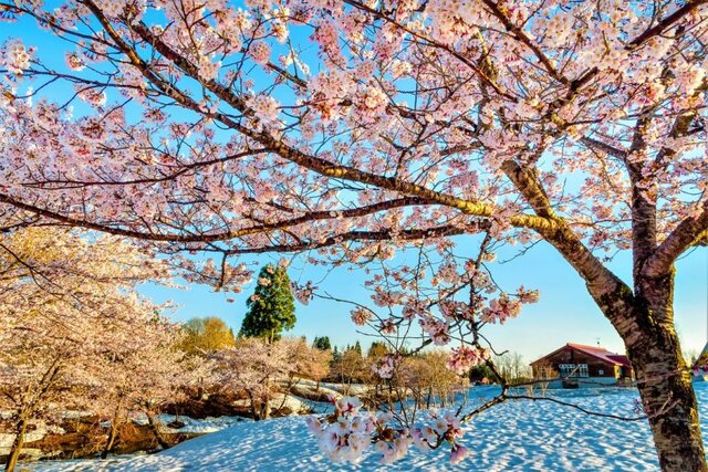 【雪×桜】雪深い地域ならではの神秘的な“雪上桜”♪魚沼市「福山峠の雪上桜」【新潟県の桜名所・お花見スポット特集2026】