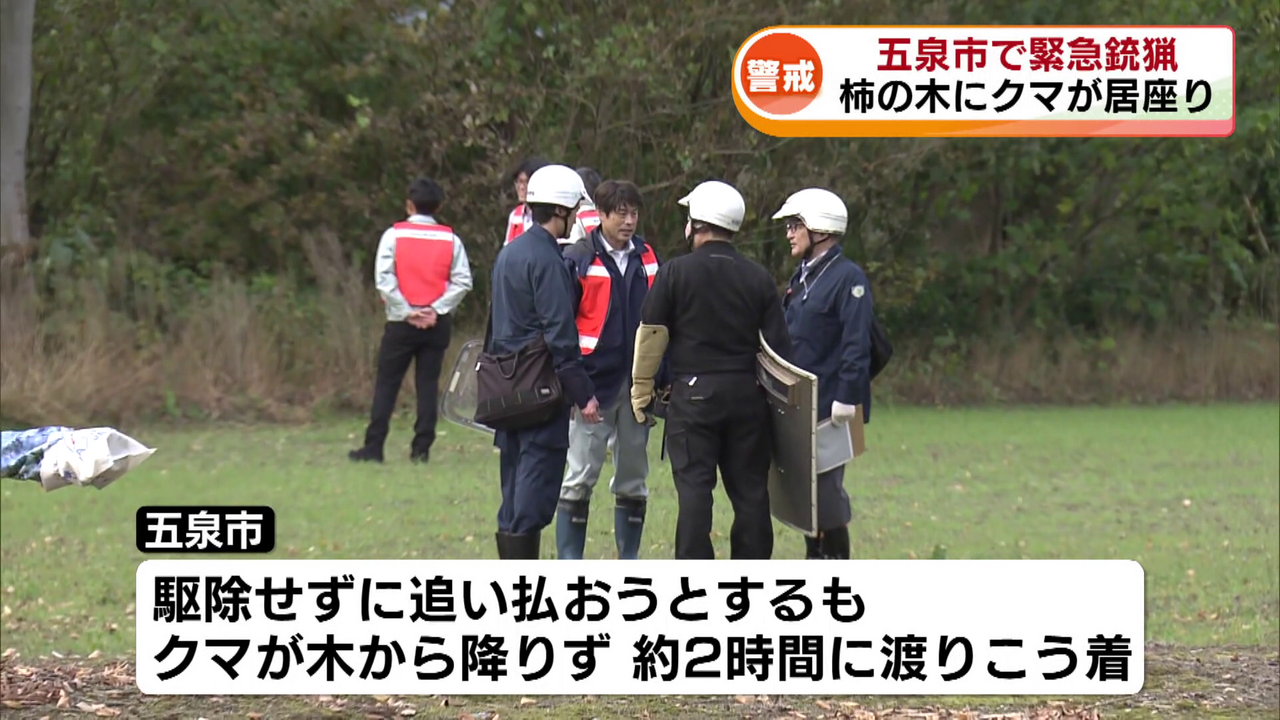 しかし、クマが木から降りず約2時間にわたってこう着状態。