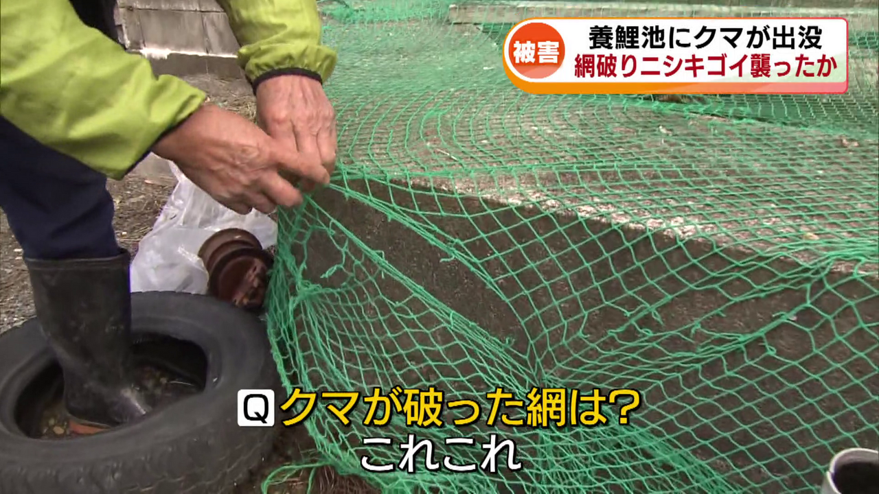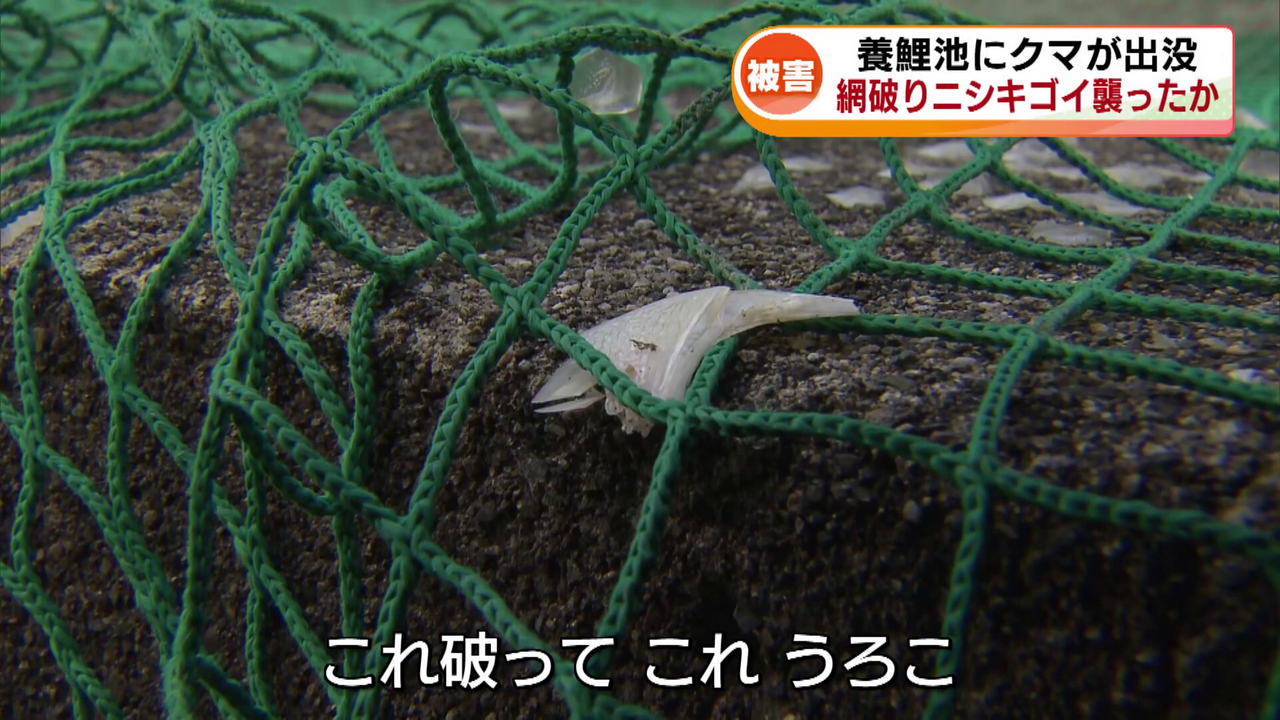 12日午後には、網を直しに来た平沢さんの家族がニシキゴイを食べるクマを目撃したといいます。