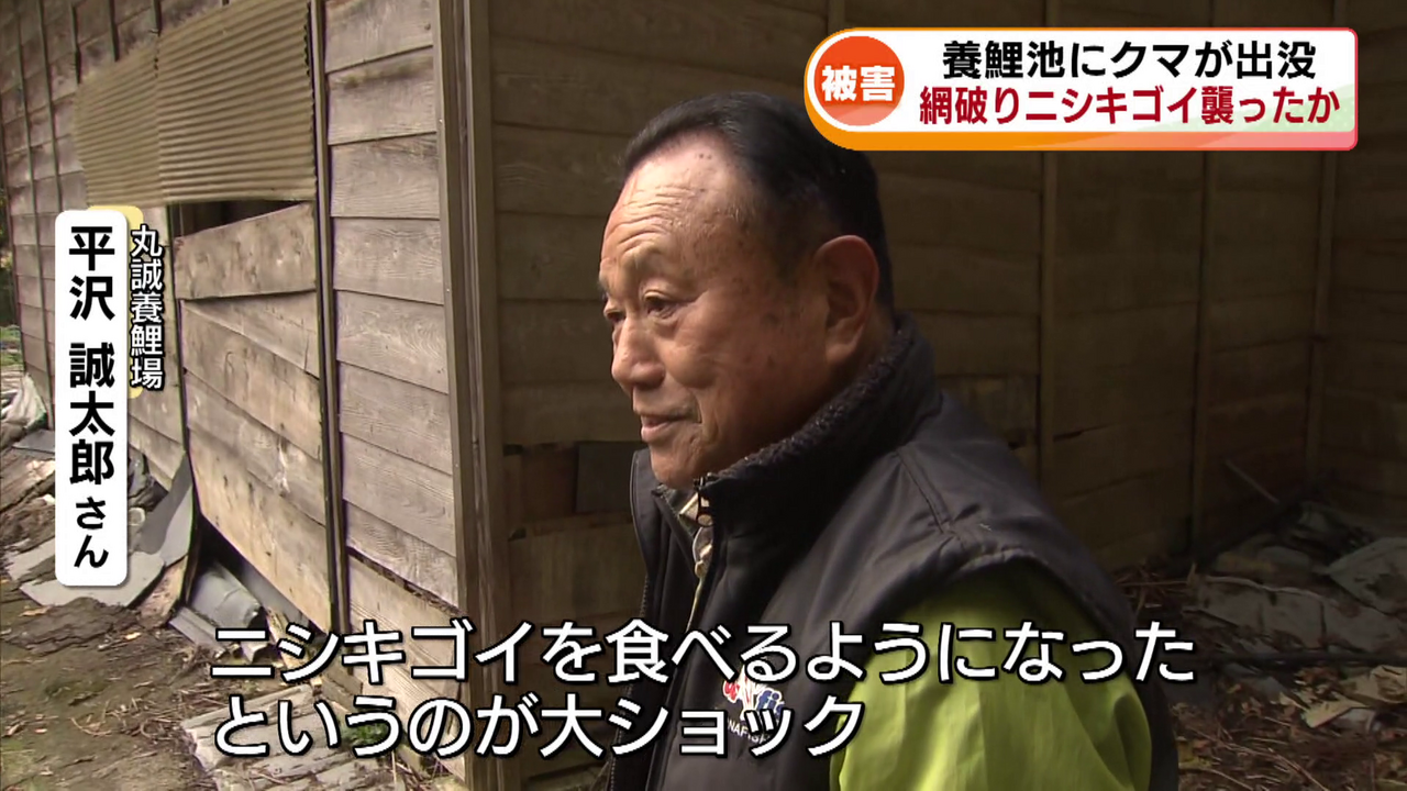 ニシキゴイを育ててこの道70年…平沢さんはこれまでニシキゴイの餌を入れた給餌器がクマに狙われたことはありましたがニシキゴイが食べられる被害は初めてだといいます。