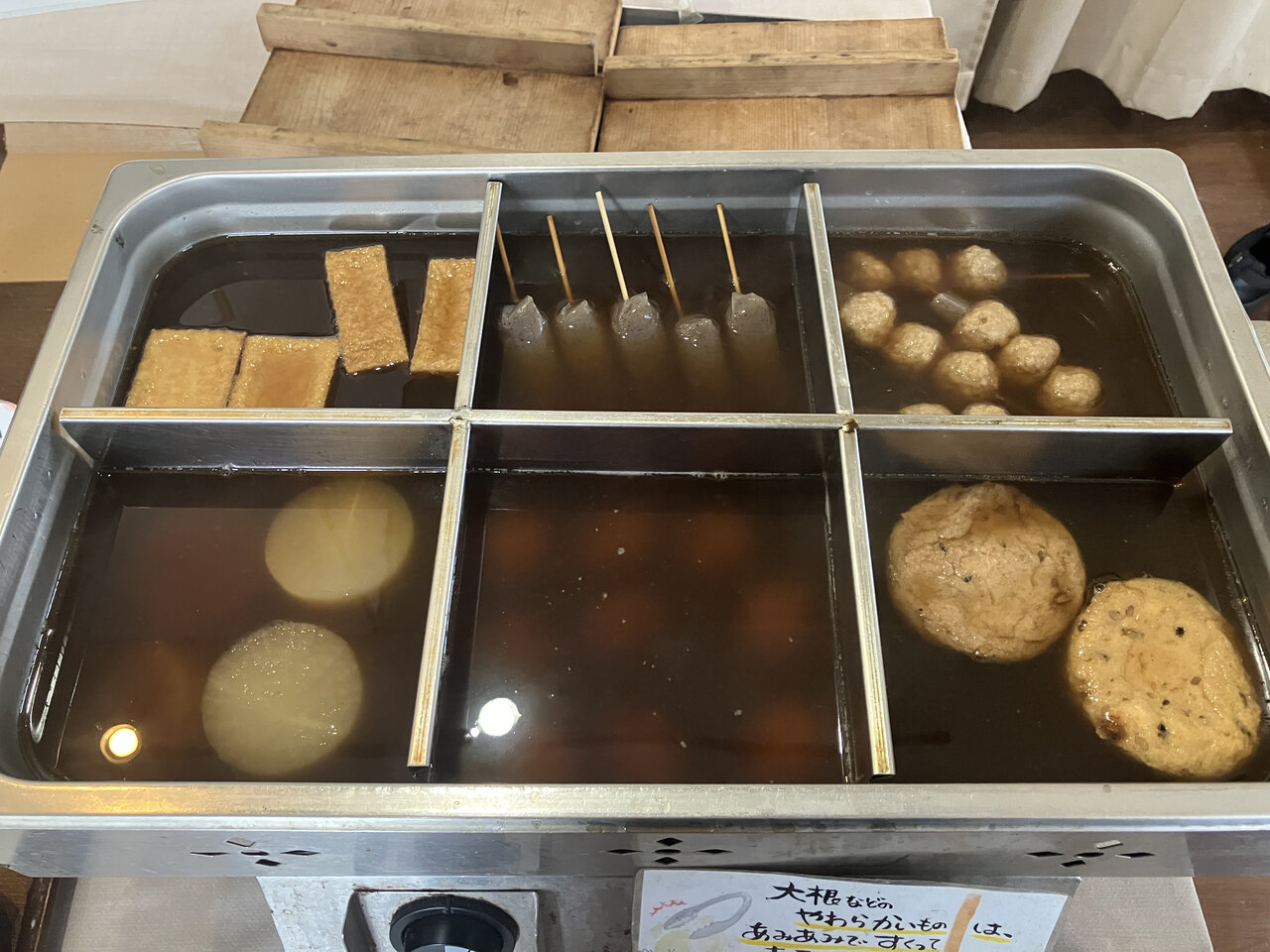 この日は、たまご・こんにゃく・だいこん・厚あげ・とりつくね(各140円)※値段は取材時のもの