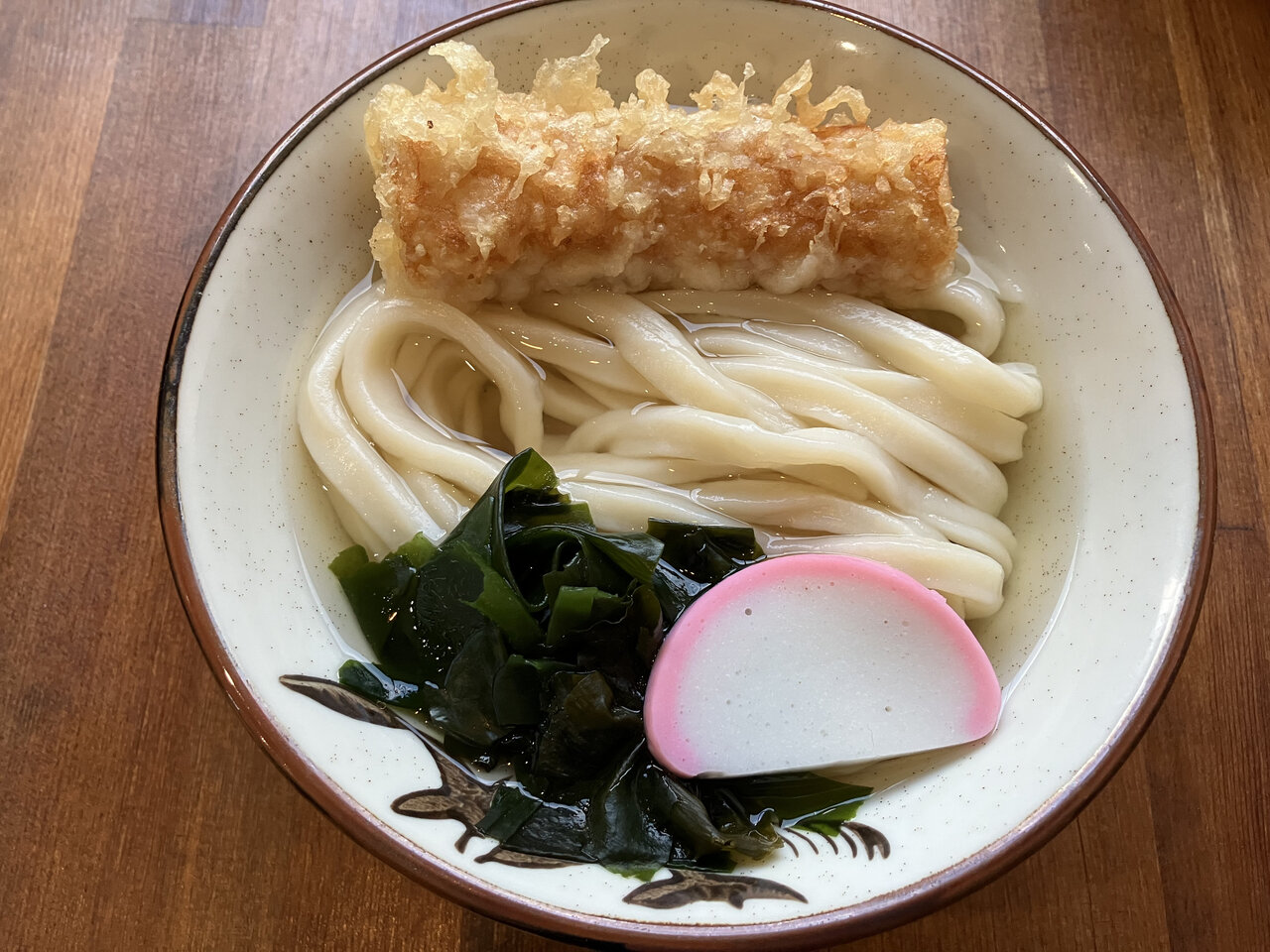 “かけうどん”と“ちくわの天ぷら”がセットになったメニューです。
