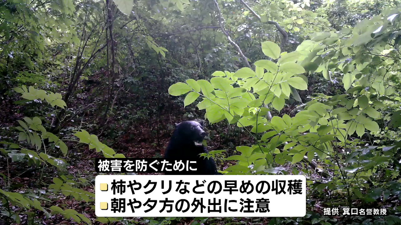 箕口名誉教授はエサとなる柿やクリなどをなるべく早く収穫することや、クマが活動する朝や夕方の時間帯の外出に注意を呼びかけています。