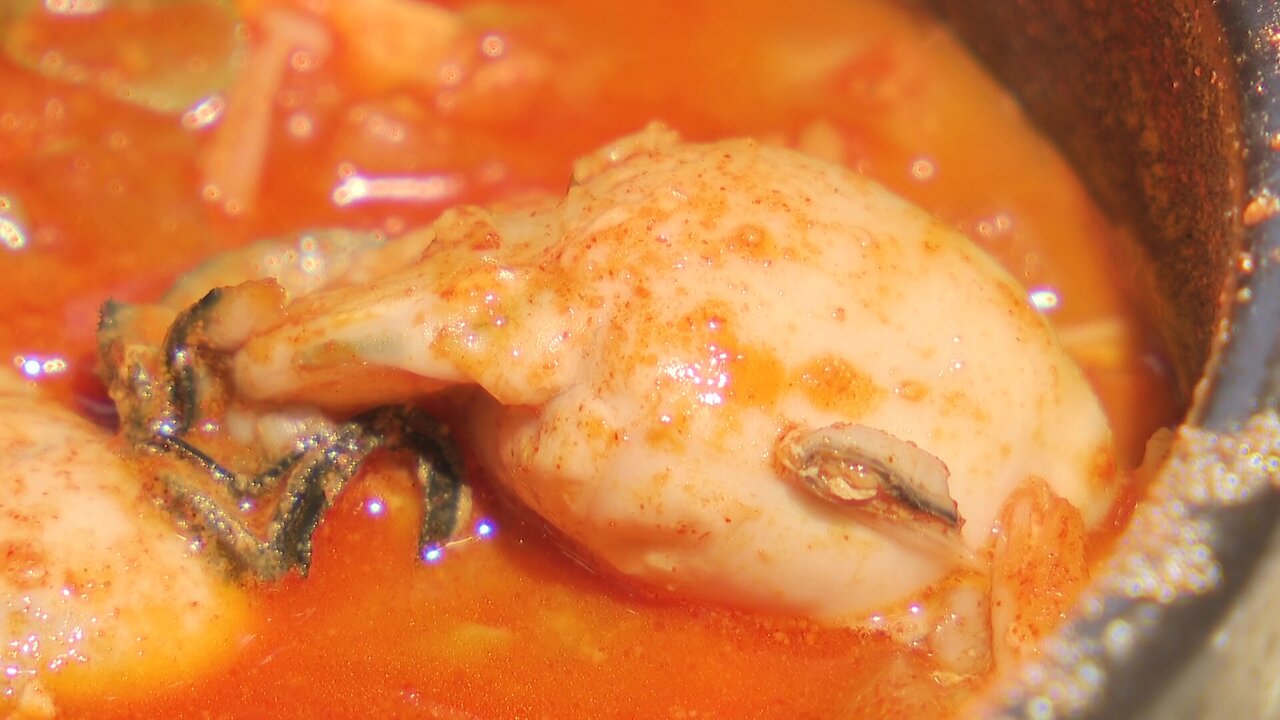 唐辛子で真っ赤に染まったスープに牡蠣が入るのがコッテジさんの冬の定番。