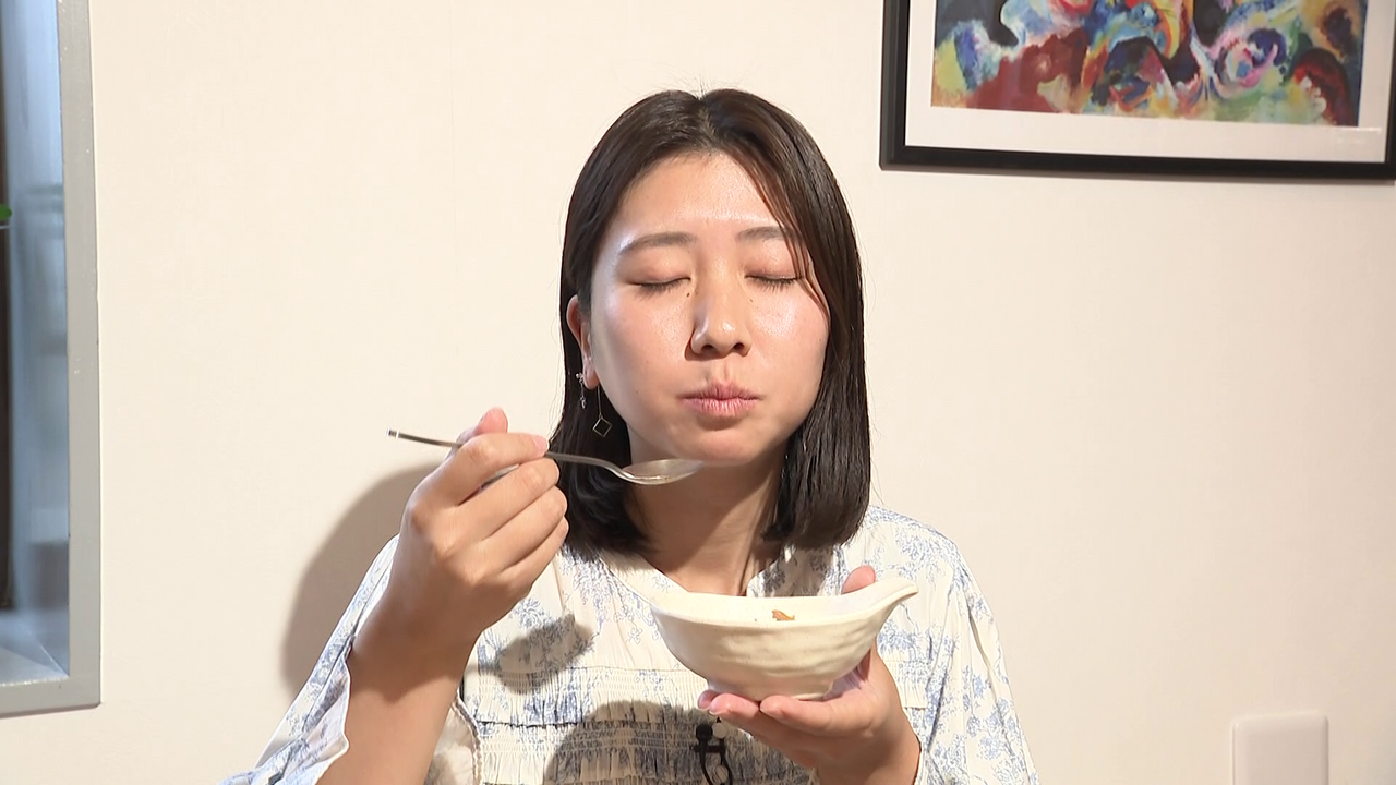 しっかり煮込まれたモツに「やわらかっ!!」と驚く石原アナ。