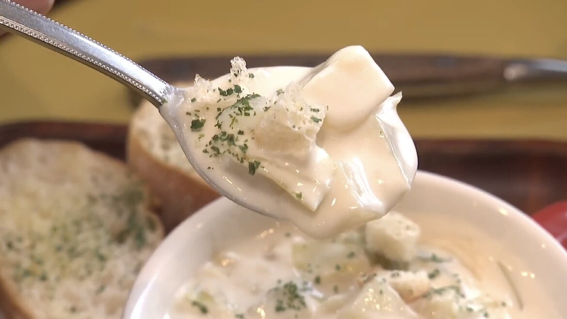 バゲットは、ガーリックで味付けされているので、クラムチャウダーにつけて食べるとまた別の味わいになります。