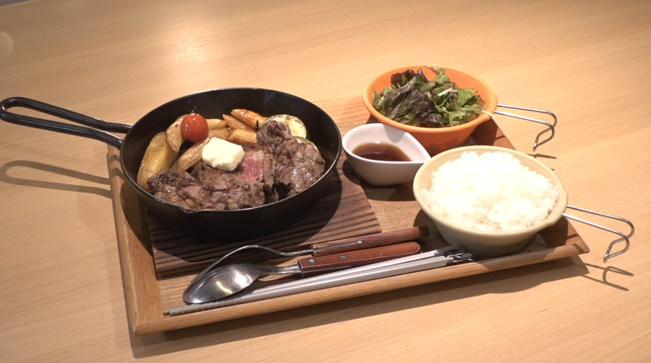 人気メニューはスキレットでじっくり焼いた「牛ステーキグリル飯」。