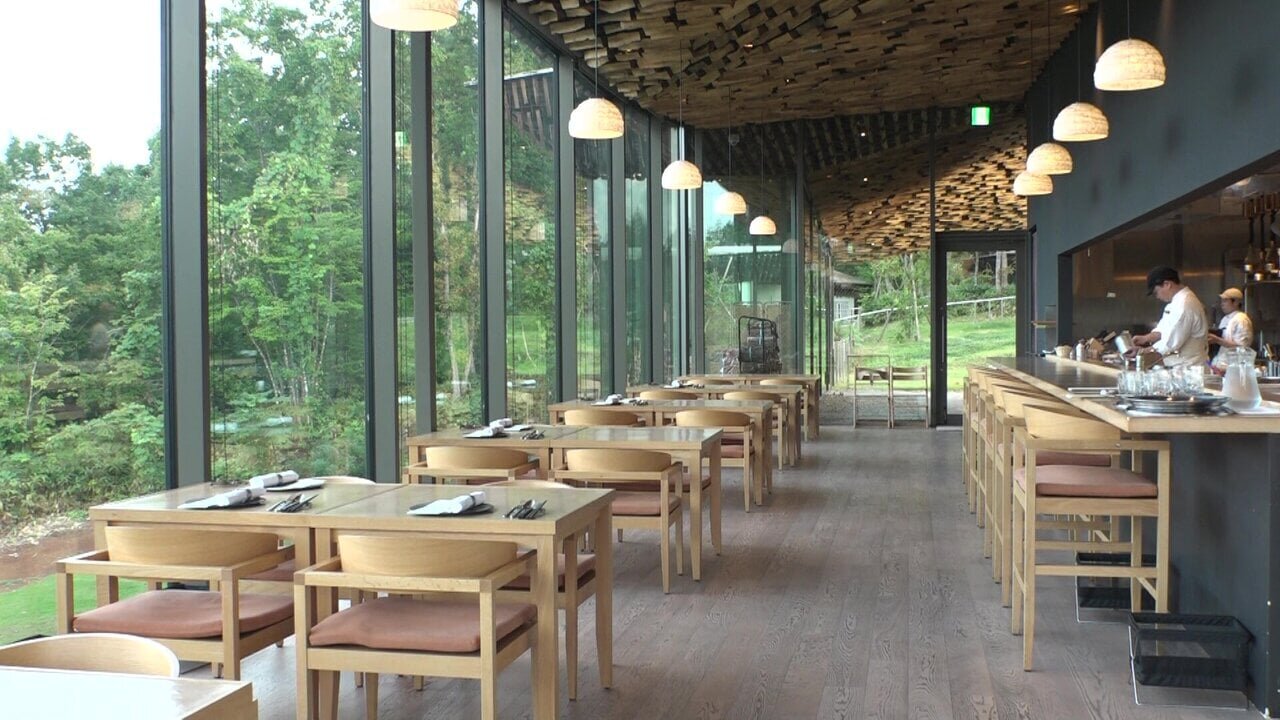施設内にある「Restaurant雪峰」さんでは自然を満喫しながら、レストランで旬の食材を使った食事を楽しめちゃうんです。