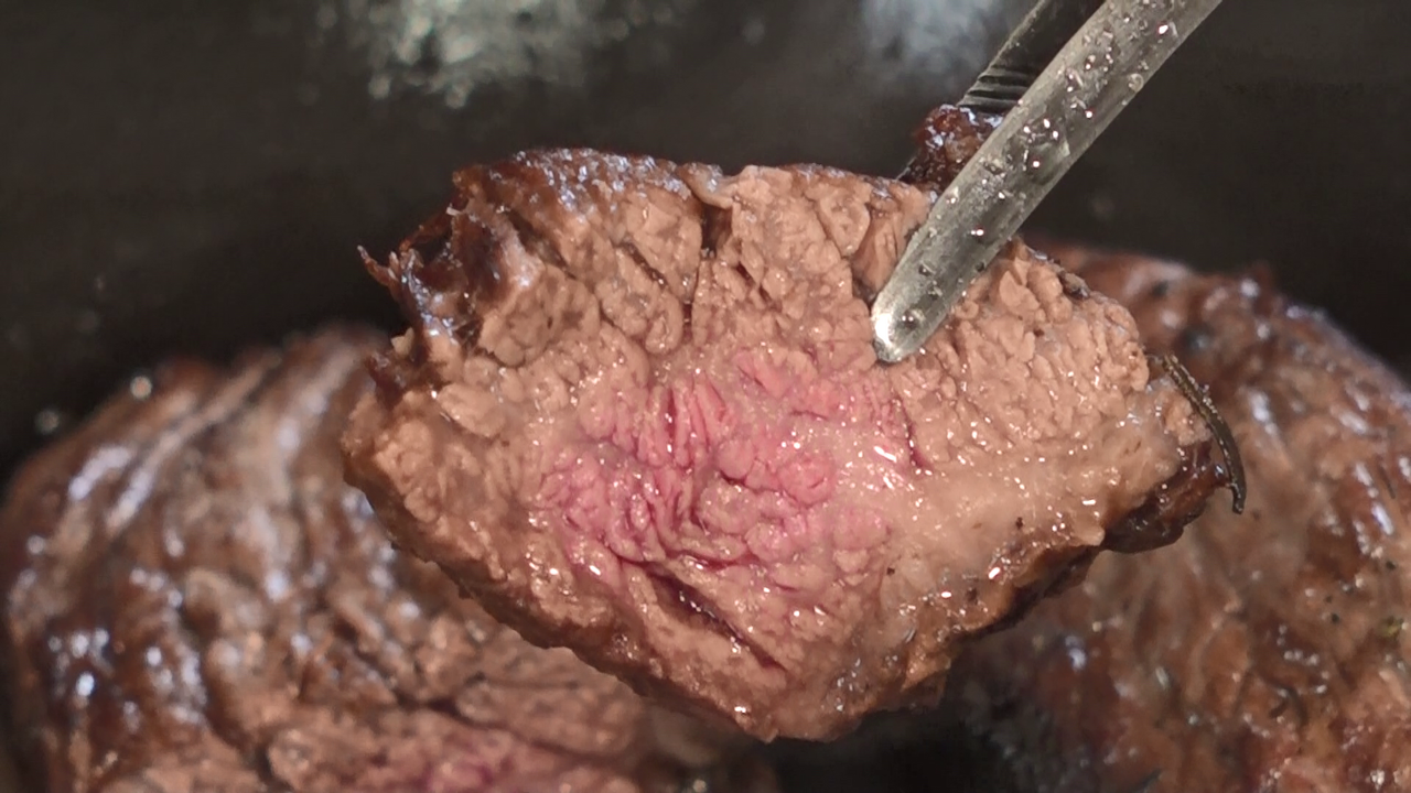 塊のまま焼き上げるので、肉汁をそのまま食べることができます。