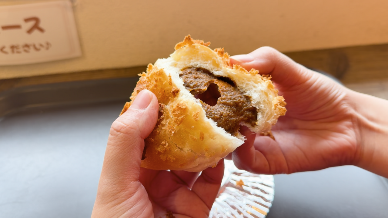 もちもちした食感のカレーパンは、一口食べただけで強烈な辛さを感じます。
