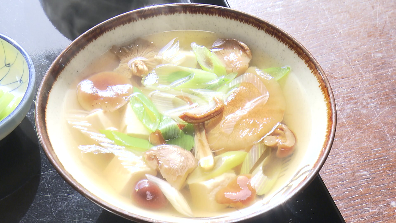 秋冬限定で、定食の汁物から変更することができる「キノコ汁」。
