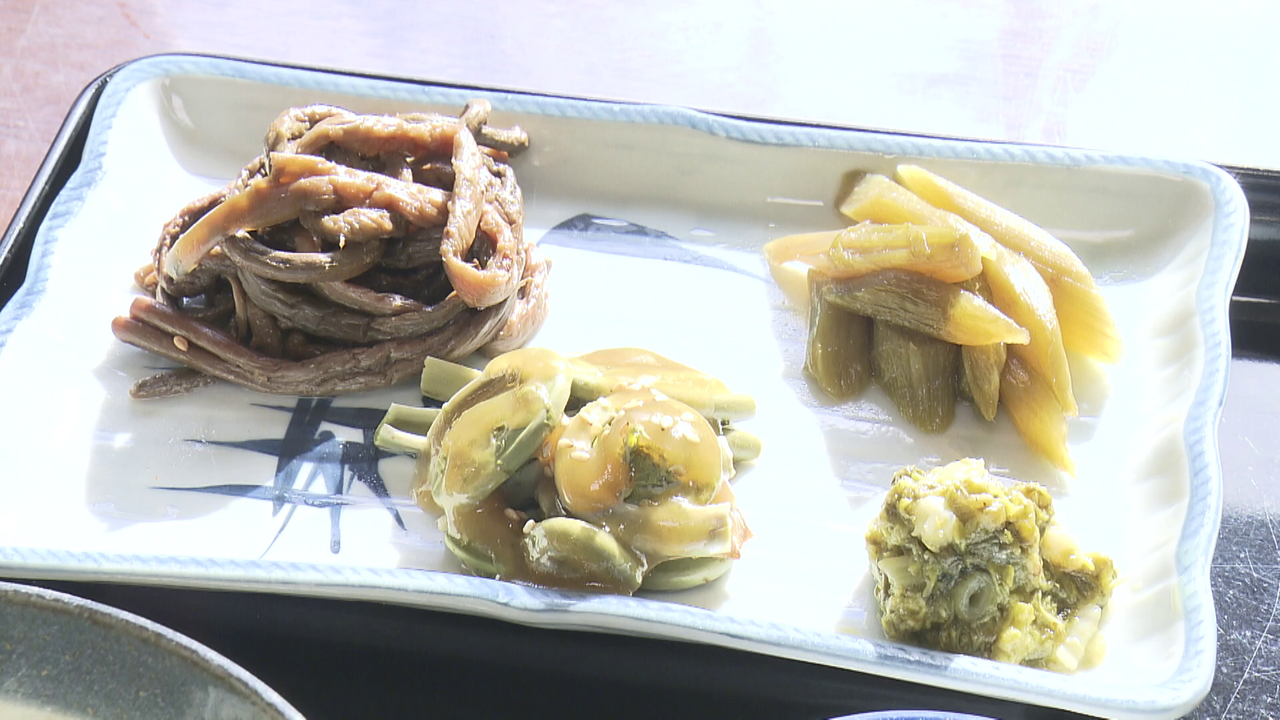 オープン以来変わらないラインナップで、ゼンマイ煮、コゴメのゴマ味噌、山ウドの煮物、フキノトウの酢の物を味わうことができます!