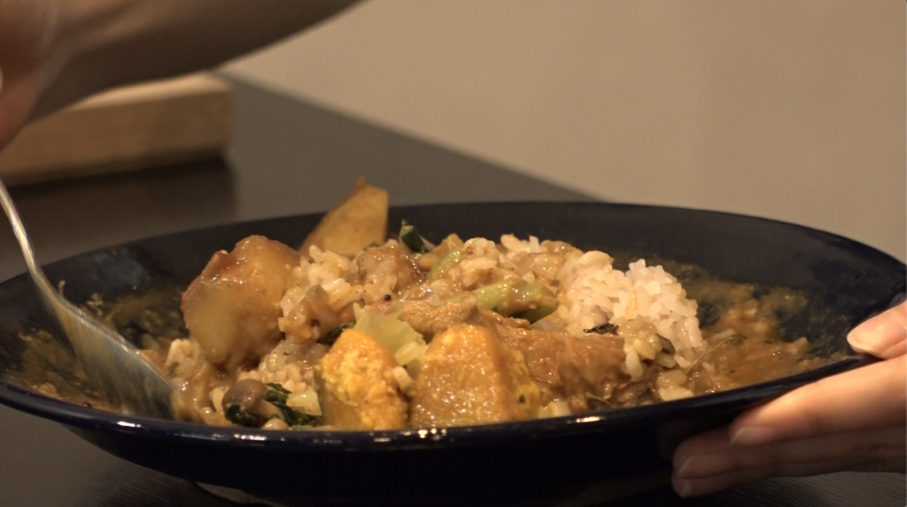 今回いただくカレーはスパイスの女王とも呼ばれるカルダモンを生かした「カルダモン香るさつまいもとチキン」(1,050円)です。