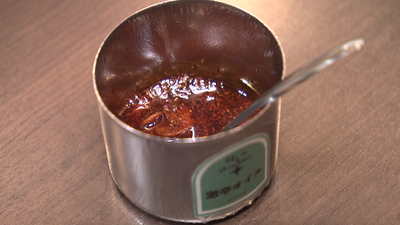 最後はカレーも付け合わせもご飯も全て混ぜて食べるのがおすすめ!味変の激辛オイルもありますよ♪