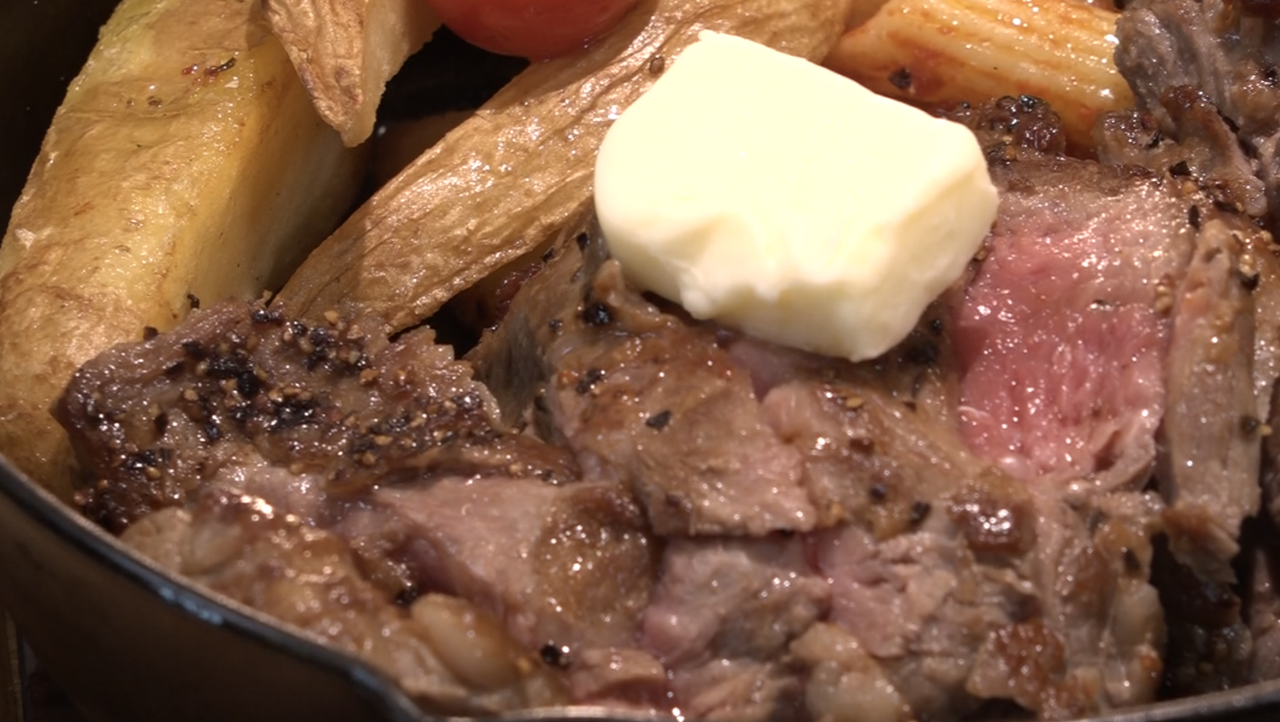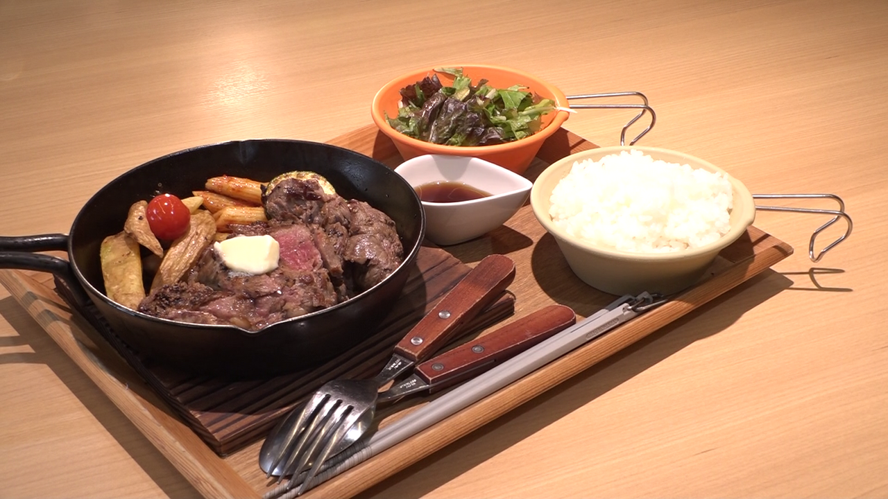 こちらの人気メニューはスキレットでじっくり焼いた「牛ステーキグリル飯」!