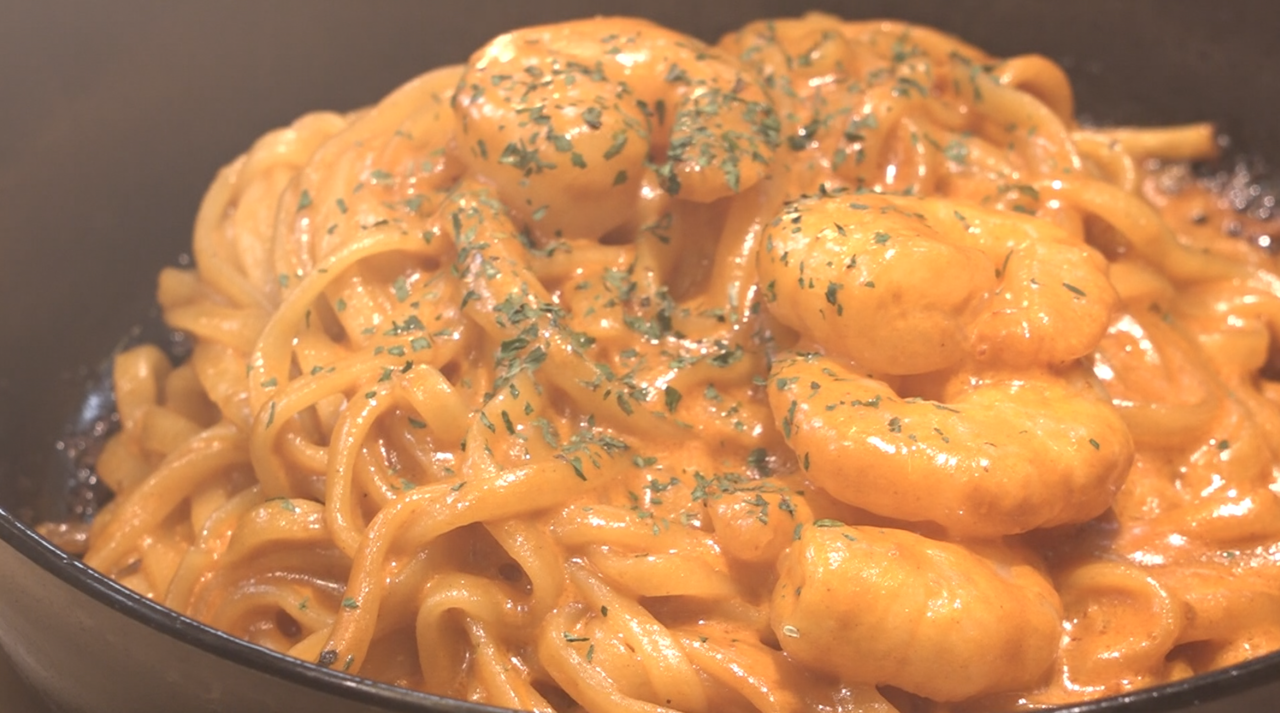 もちもちとした太麺が濃厚な海老クリームと合わさり絶品です!