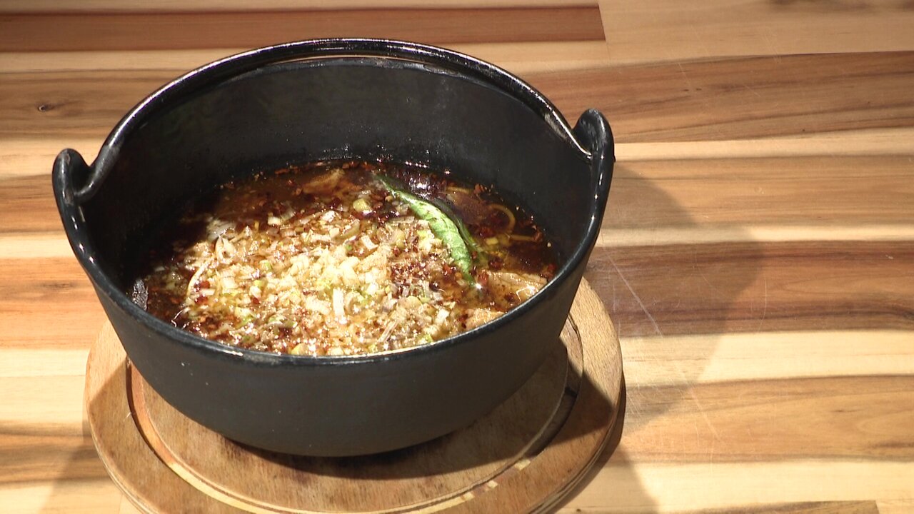 続いての鍋料理は、羊肉が主役。しっかり取ったダシに、もうもうと熱した油をかけて香りを引き出す四川料理です。ガツンと辛い中華が食べたい!という方にうってつけ。