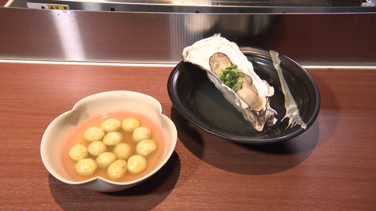 いまの時期は、磯の香りをぎゅっと閉じ込めた「牡蠣」に、むちっとした食感が美味しい「銀杏」も楽しめますよ。