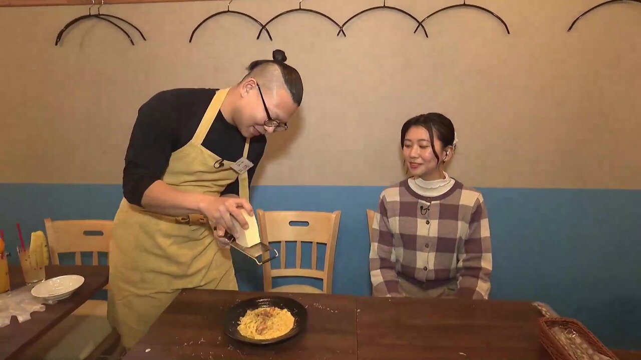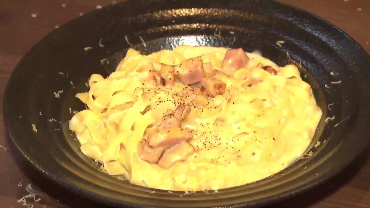 仕上げにはチーズをたっぷりと!コク深いカルボナーラにチーズのうま味が加わり、さらに濃厚な味わいになりますよ。