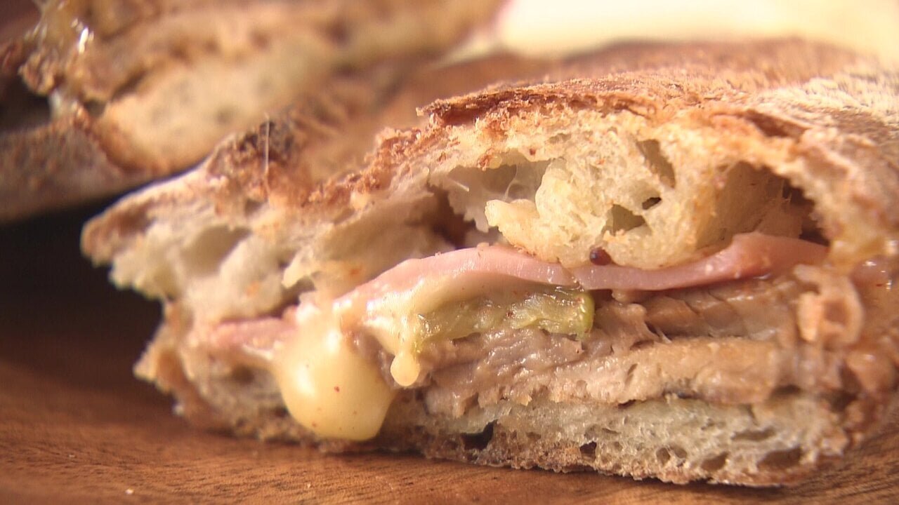 「キューバサンド」とは、ローストポークやハム、マスタード、チーズ、ピクルスなどを挟んだホットサンドのこと。