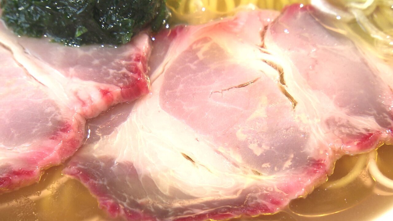 こちらの自家製の赤いチャーシューは広東風焼豚。存在感があって食欲をそそられます!