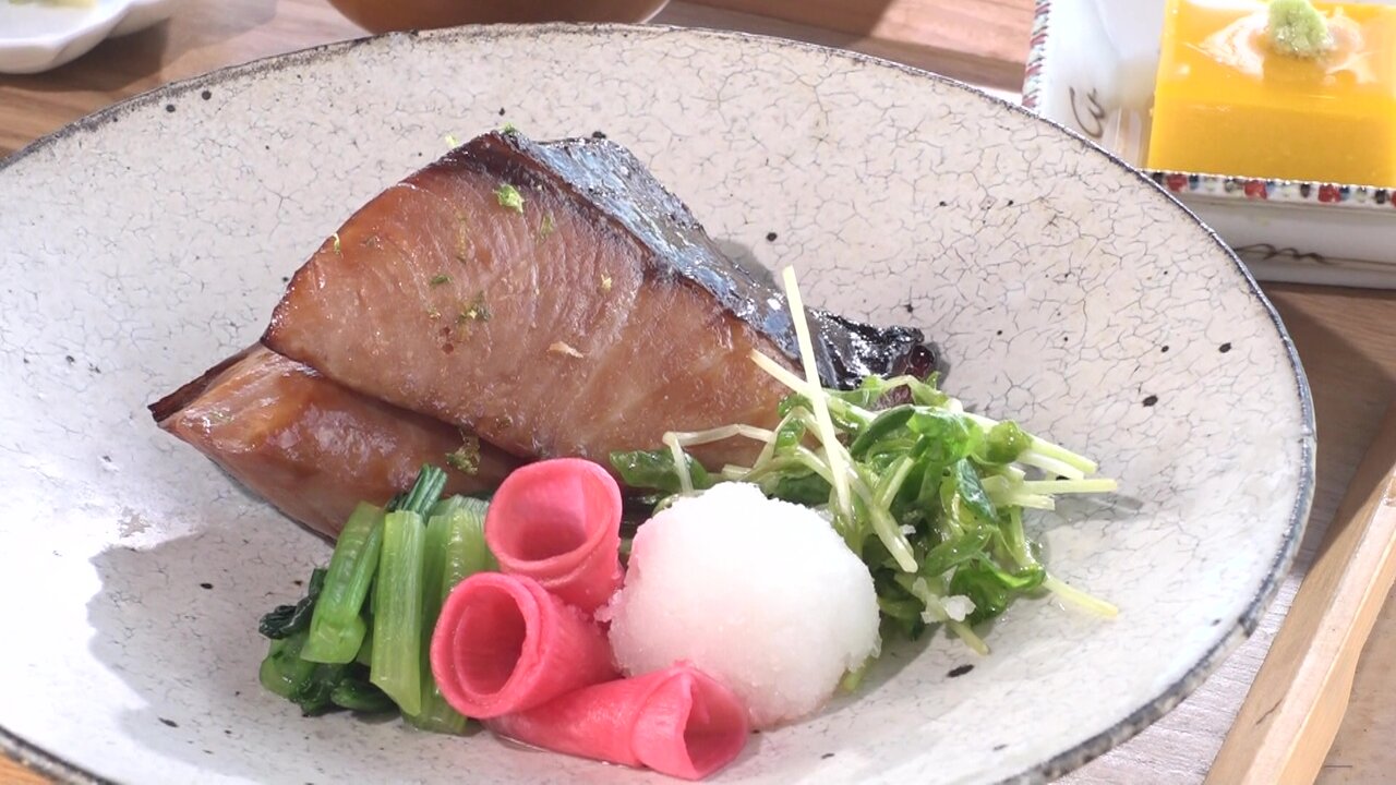 人気の御膳メニュー「本日のお魚御膳」。この日は「ヒラマサの幽庵焼き」です。