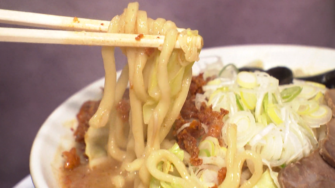 麵はもちもちとした太麺で、濃厚な味噌のスープと相性バツグンです。