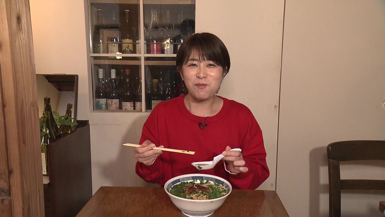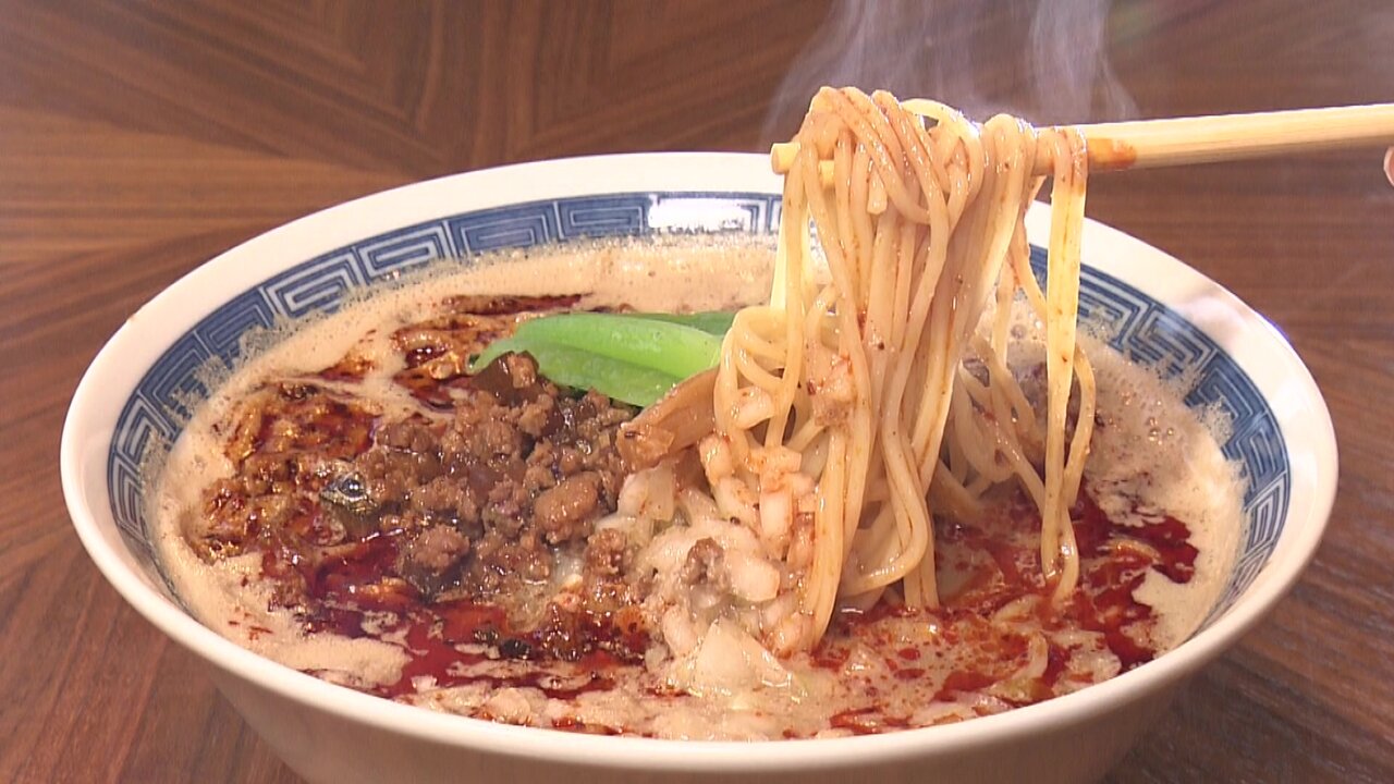 こちらは女性に人気の「担々そば」。クリーミーな胡麻色のスープは自家製“芝麻醤(チーマージャン)”を使い、胡麻の香りが秀逸です。さらに唐辛子と花椒入りの自家製ラー油で味に深みを加えています。