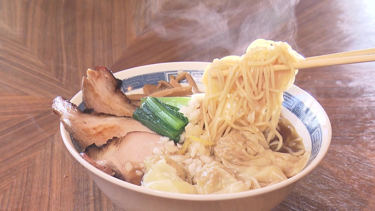 トッピングも一工夫。特製タレに漬け込み、はちみつを塗ってオーブンで焼いたチャーシュー。テルテル坊主のようなワンタンは、醤油や生姜で味付けした豚ひき肉とネギの餡が柔らかく、肉汁たっぷり。生玉ねぎや煮玉子など、すべて揃ってご主人が目指すラーメンの味が完成するんです。