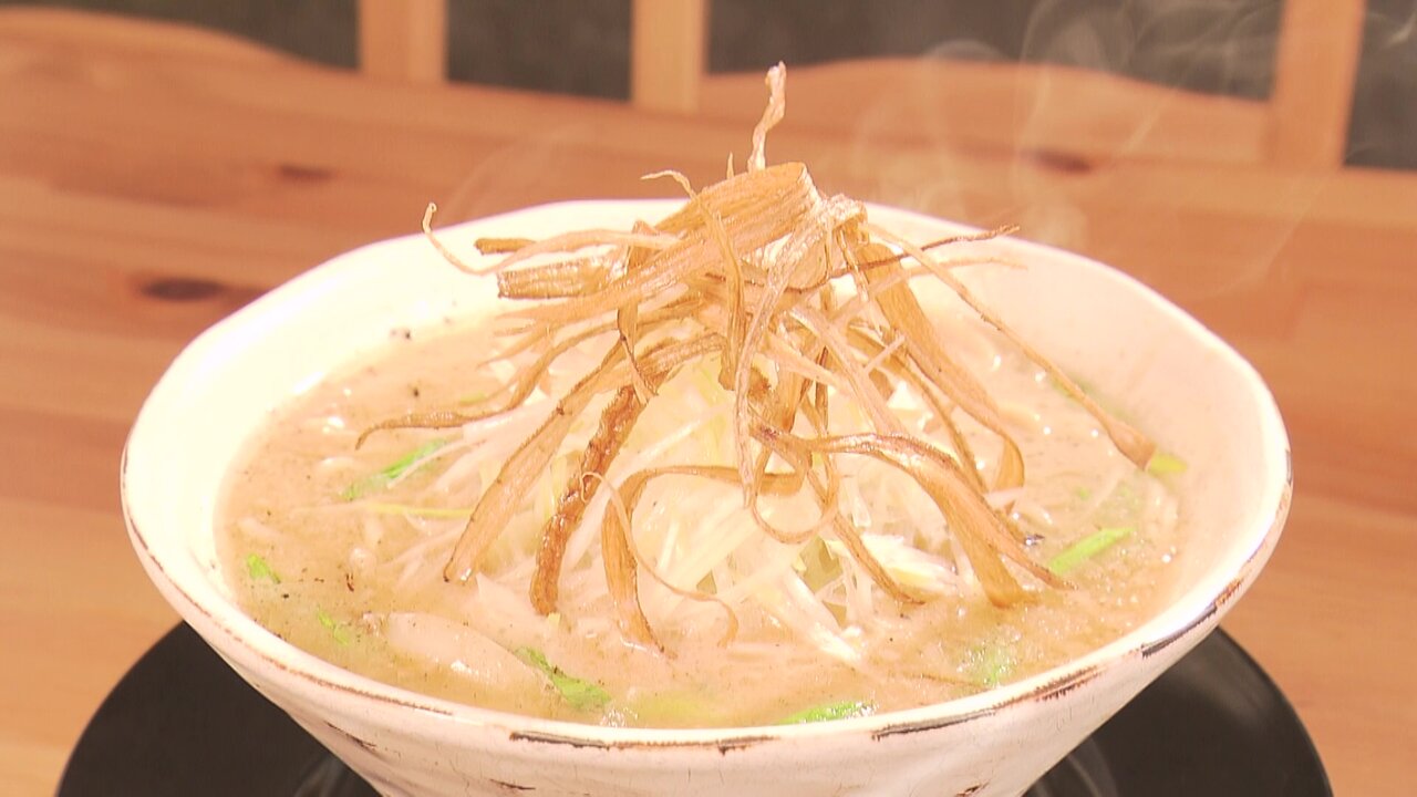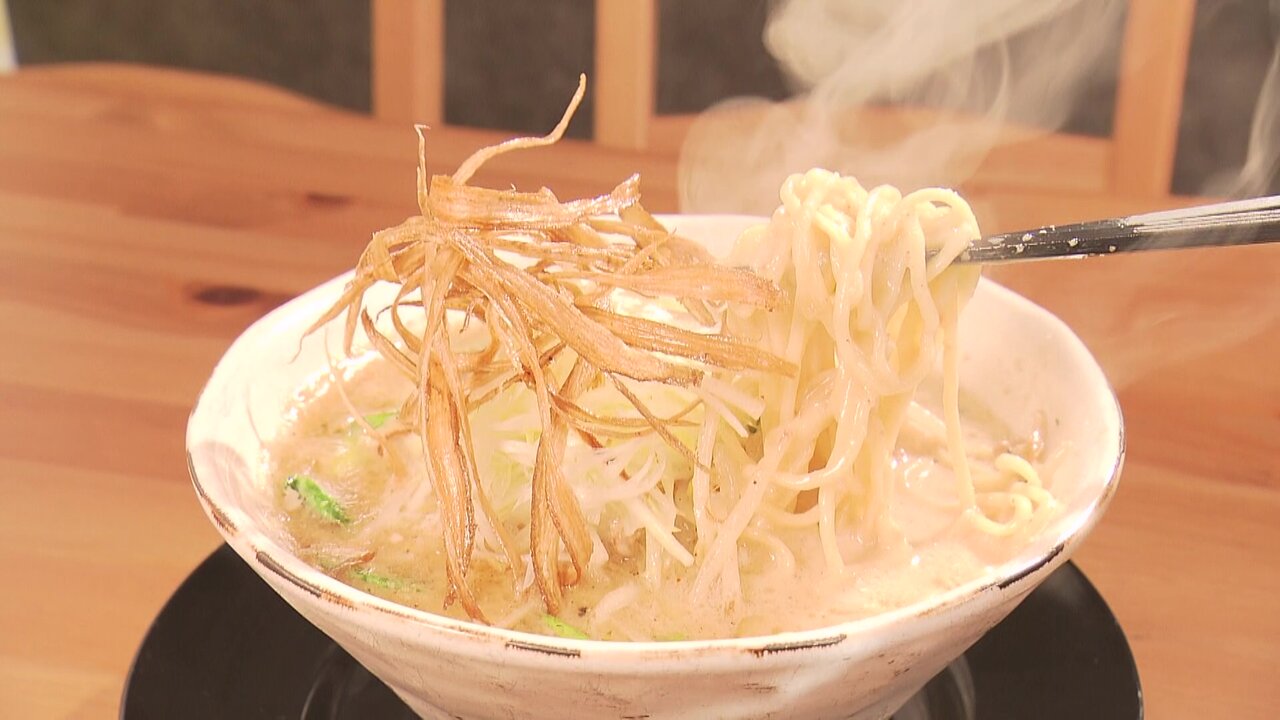 県内の有名店で24年にわたりラーメン作りを学んだご主人が、“香りで楽しむ一杯”を看板に2年前にオープン。今では連日行列ができる人気店です。