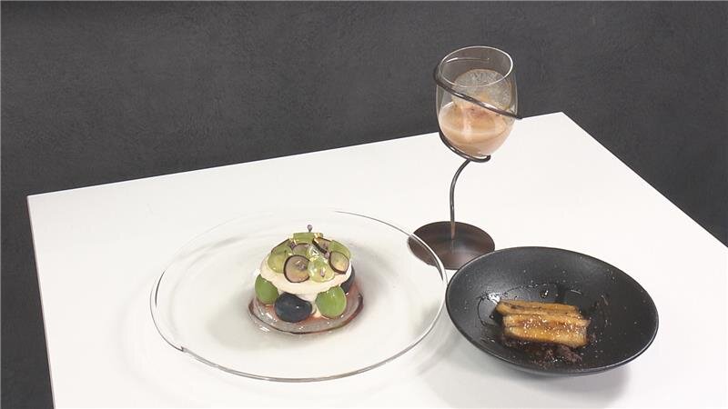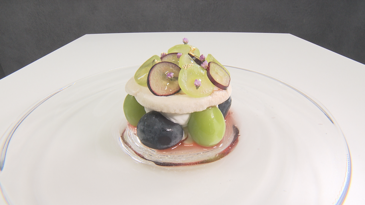 Aコース3品目は「葡萄とシャインマスカットのパヴロヴァ」。
