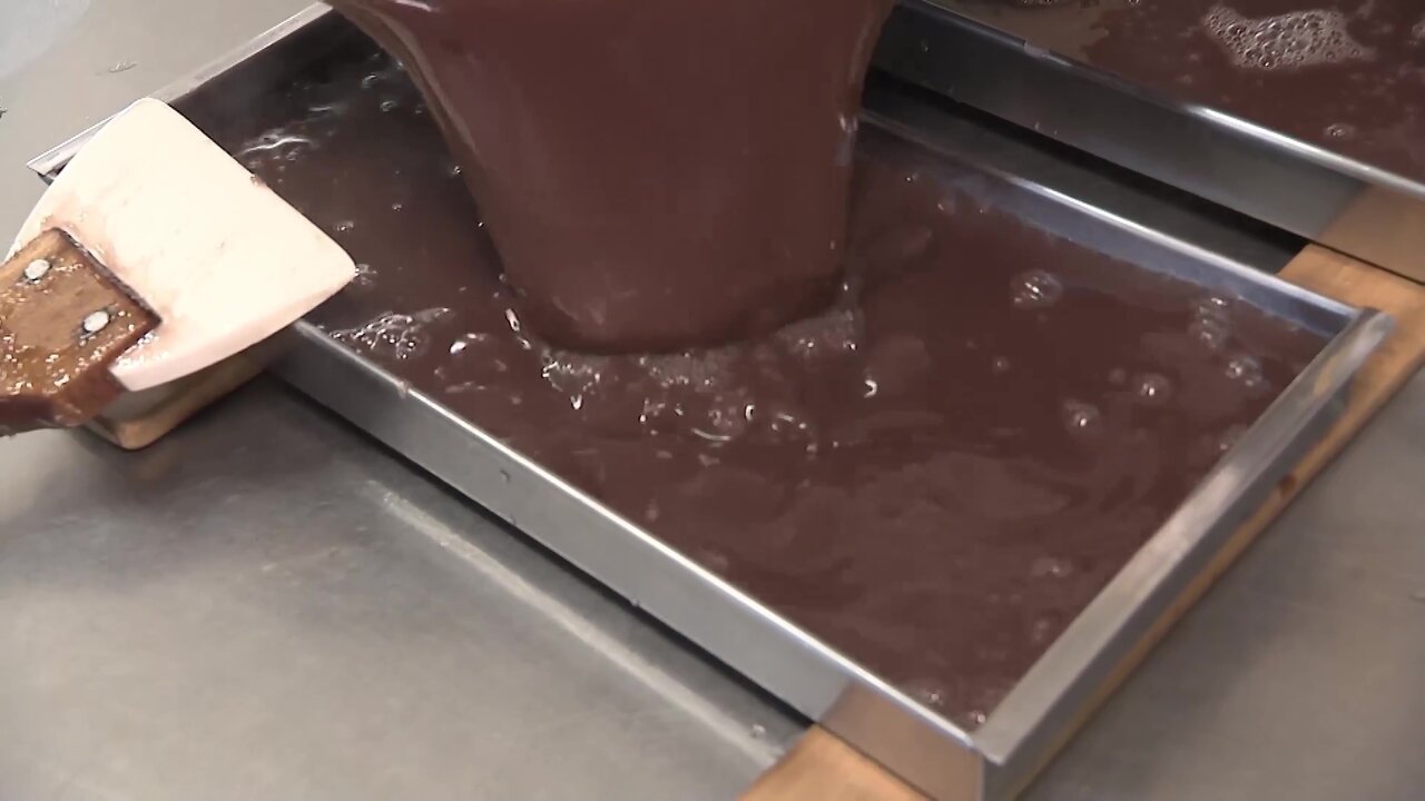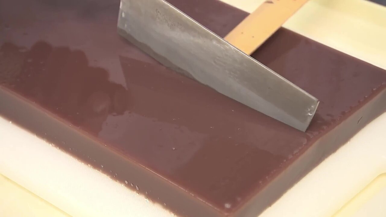 季節や温度によって固まり方が微妙に変化するため、羊かんが固まるギリギリの濃度になるよう、匠の技による匙加減で寒天の量を1g単位で調整していくのだそう。