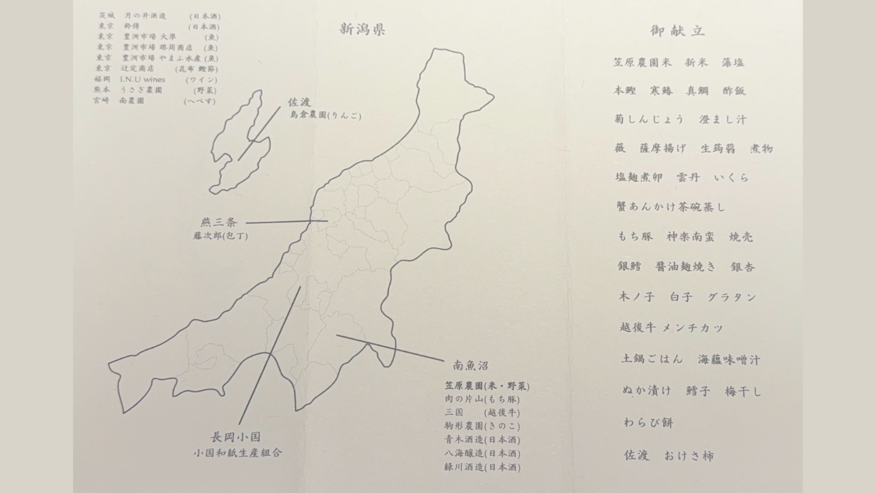 「かず斗 田舎のうつわ」さんで提供されるコース料理は、メニュー表から新潟づくし、そしてお米づくしです!