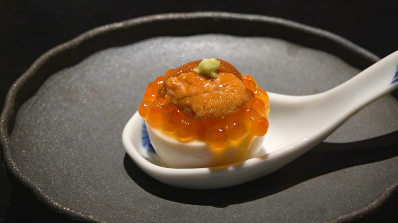 後から雲丹の風味も加わり、半熟の黄身との相性は最高ですよ!