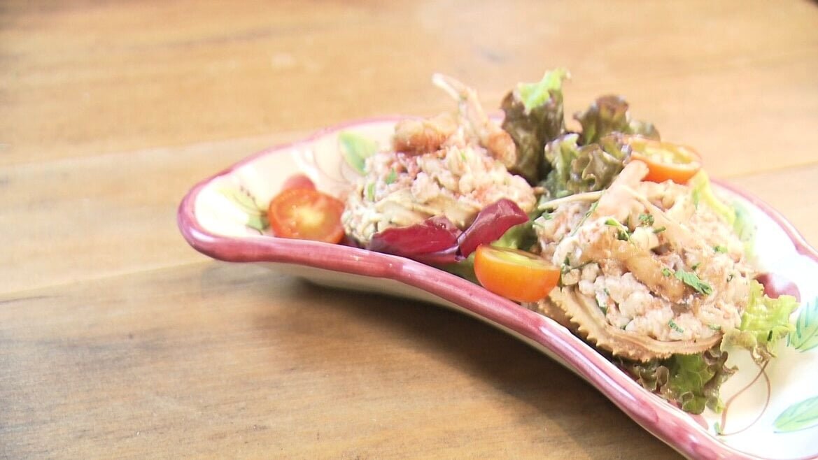この時期にオススメのお惣菜が「佐渡産セコ蟹のサラダ」。
