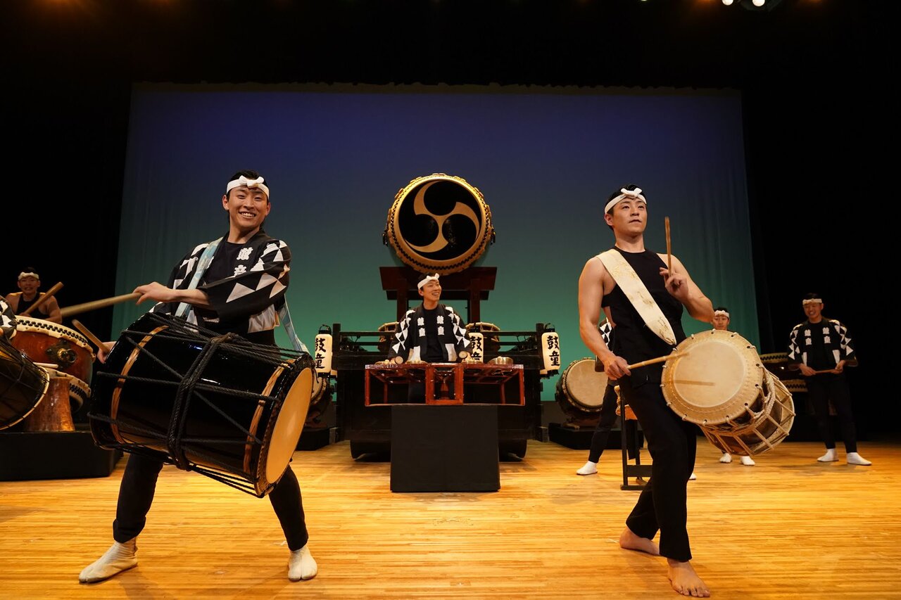 鼓童の舞台ではSET(太鼓を複数並べるスタイル)や担ぎ桶太鼓を華麗に打ちこなし、