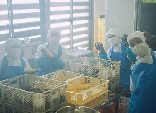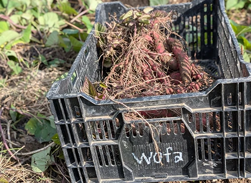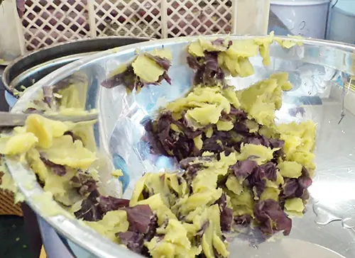収穫したさつまいもが加工され