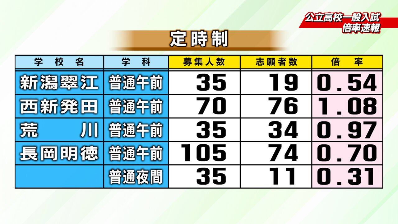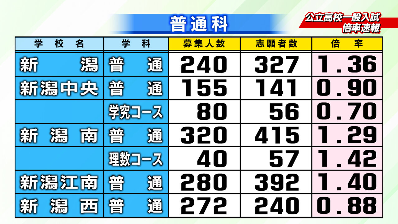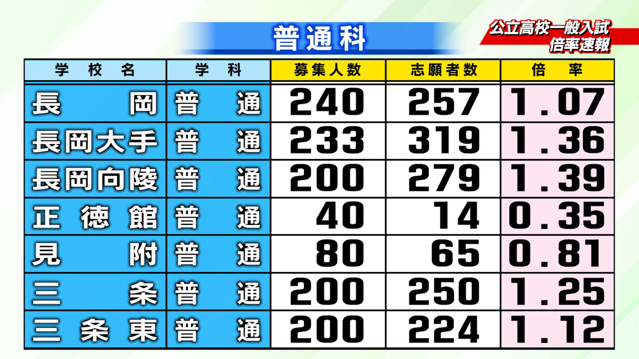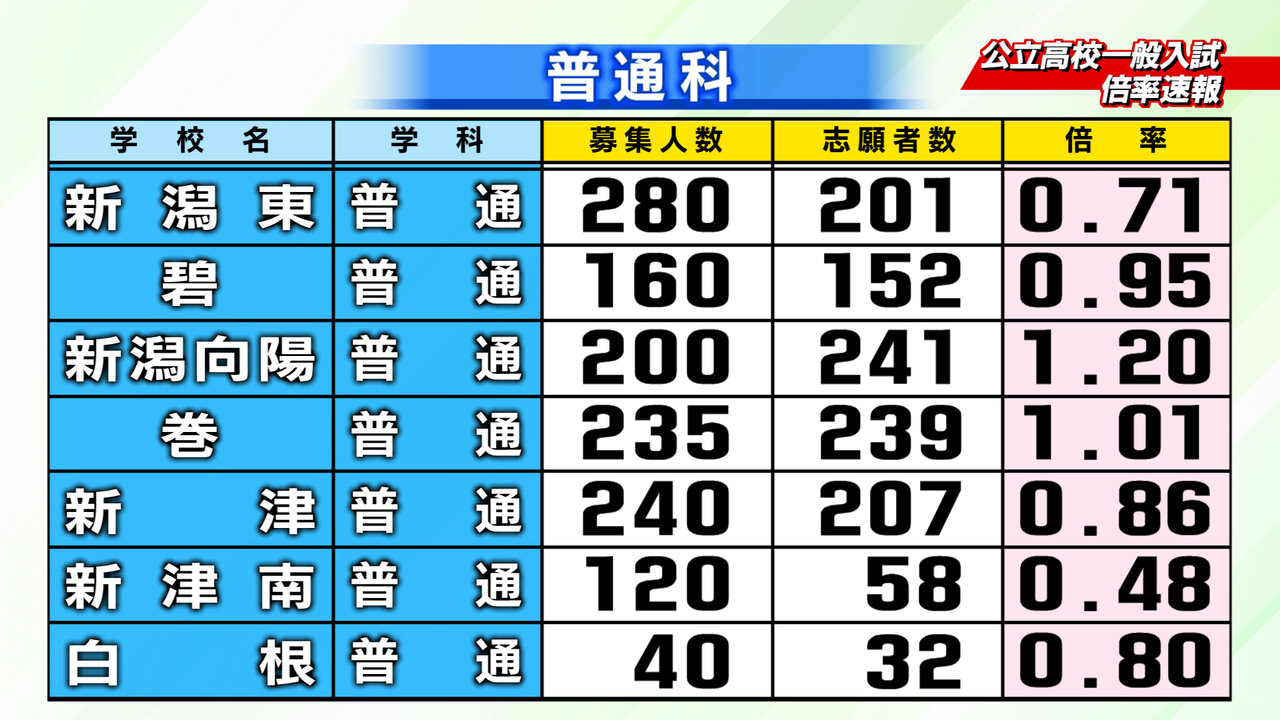 2月18日新潟県教育庁発表、2026年度入学の新潟県内公立高校一般入試の倍率速報です。2/24~2/26にかけて志願変更をすることができます。