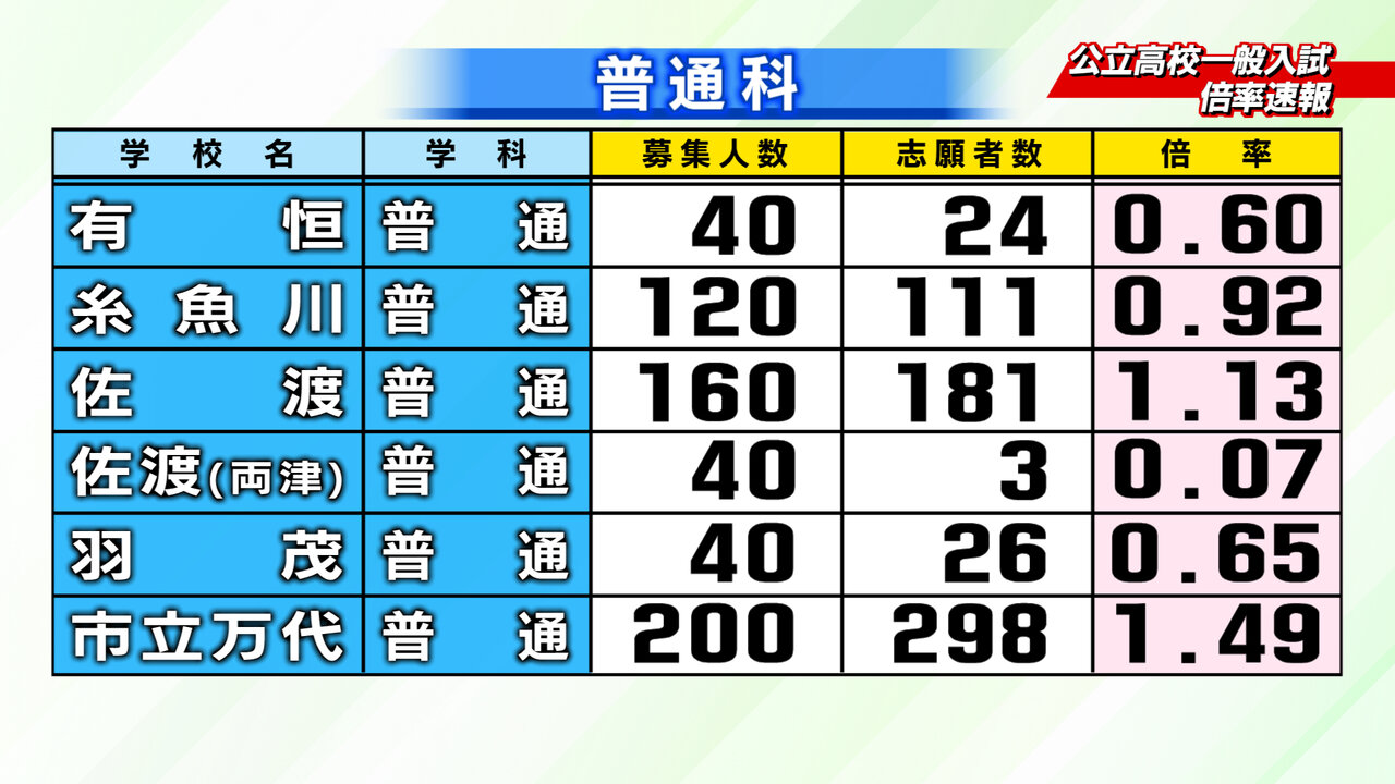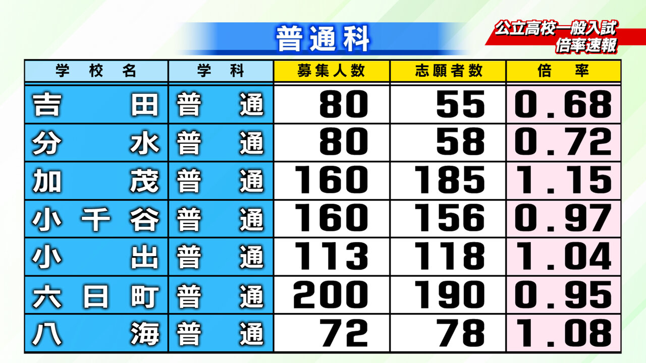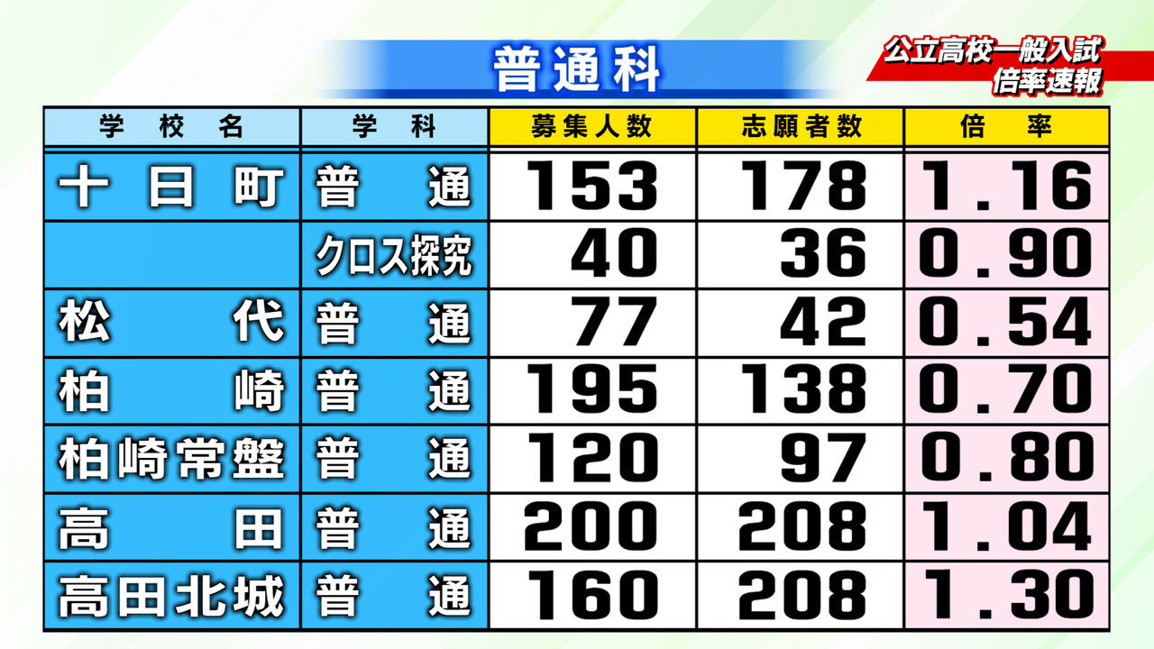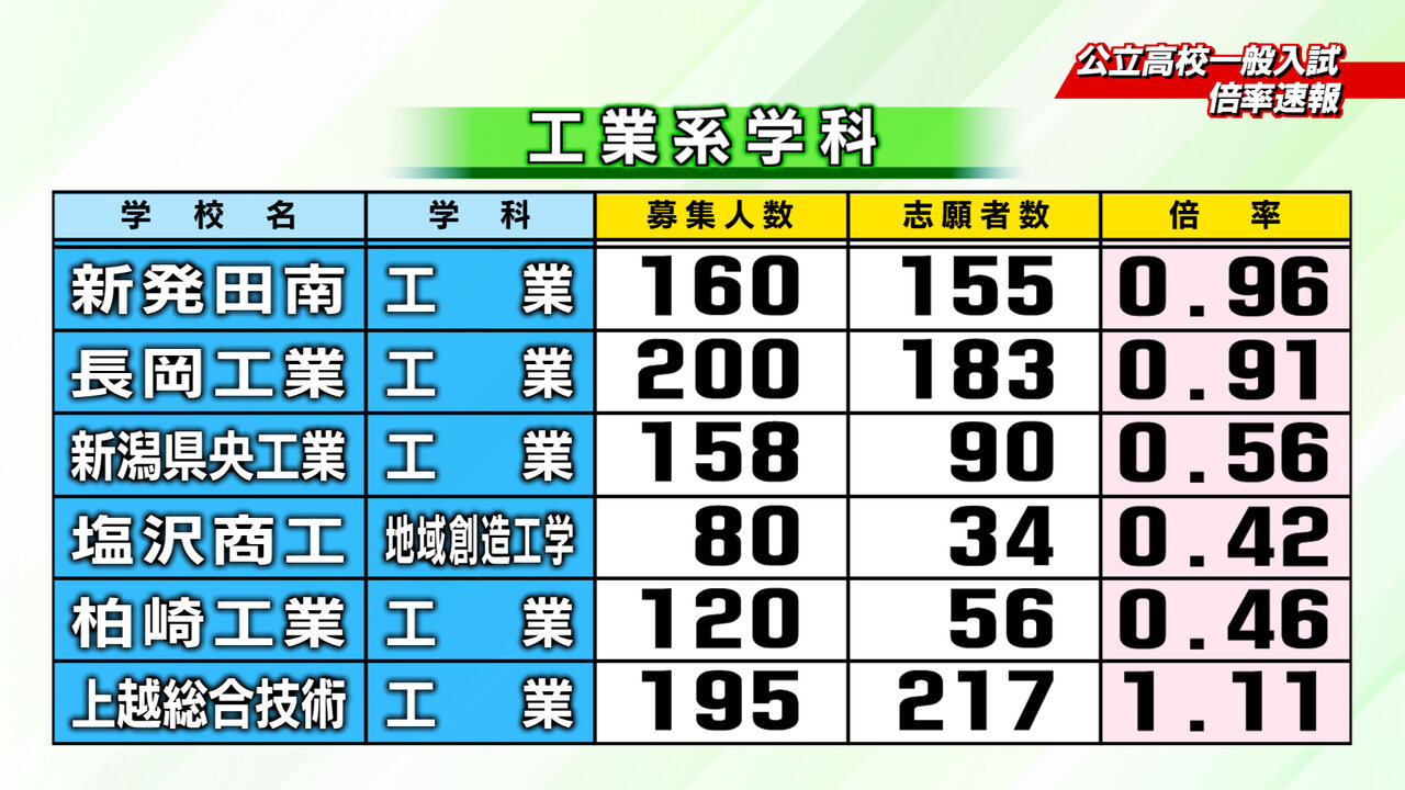2月18日新潟県教育庁発表、2026年度入学の新潟県内公立高校一般入試の倍率速報です。2/24~2/26にかけて志願変更をすることができます。