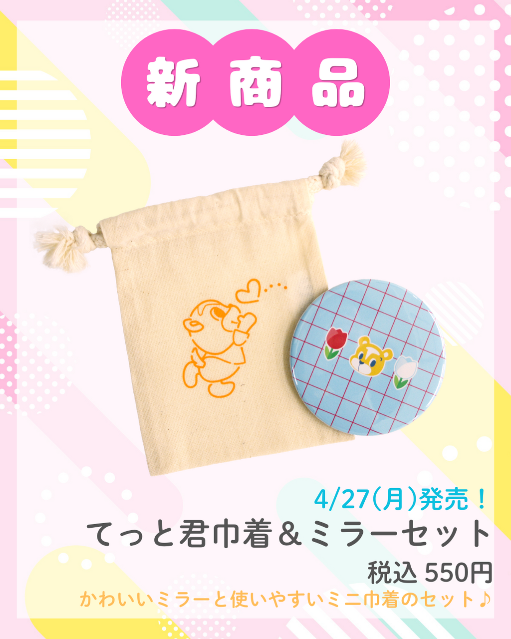 4/27(月)発売:ミラー&巾着セット、タオルハンカチ2種、マグカップ