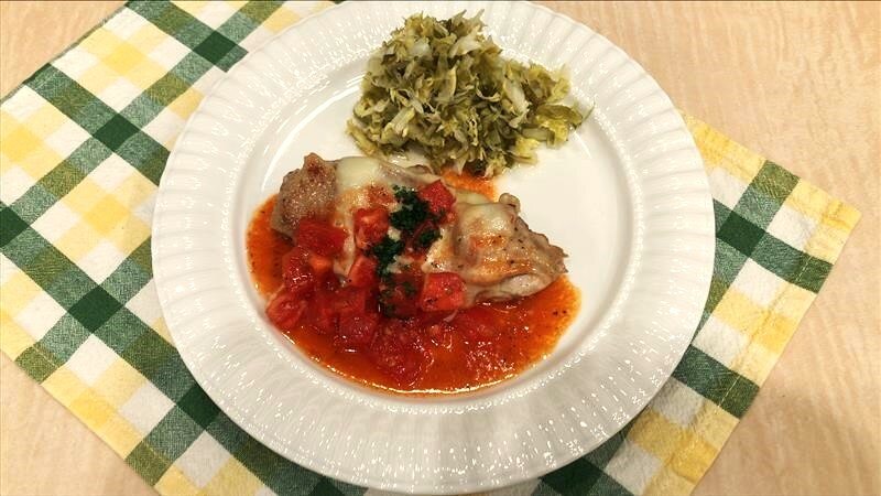 ジューシーに焼き上げた鶏肉にとろりと溶けたチーズ、さっぱりとしたキャベツをたっぷり添えた満足感のある一皿ですよ。