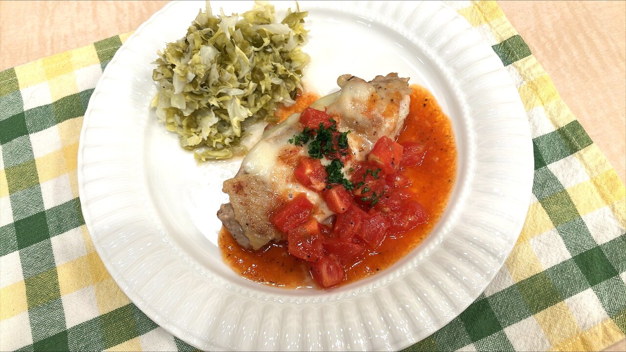 【ボリューム満点】ジューシーな鶏肉にチーズをとろっと♪「鶏肉のチーズ焼き たっぷりキャベツ添え」4/15(水)放送 中島先生のレシピ