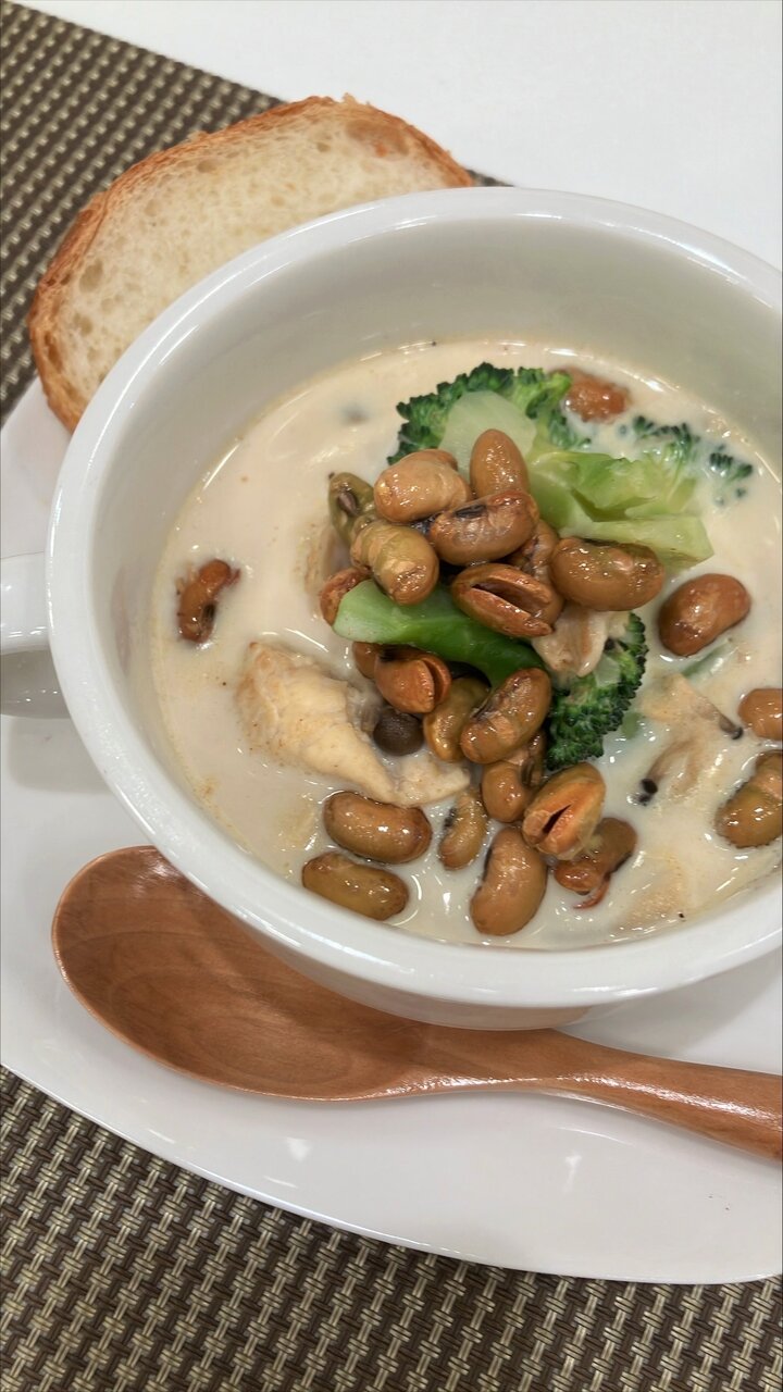 【節分メニュー】きな粉×大豆でコク深く♪「鶏肉と野菜のきな粉クリームスープ」2/3(火)放送 中島先生のレシピ