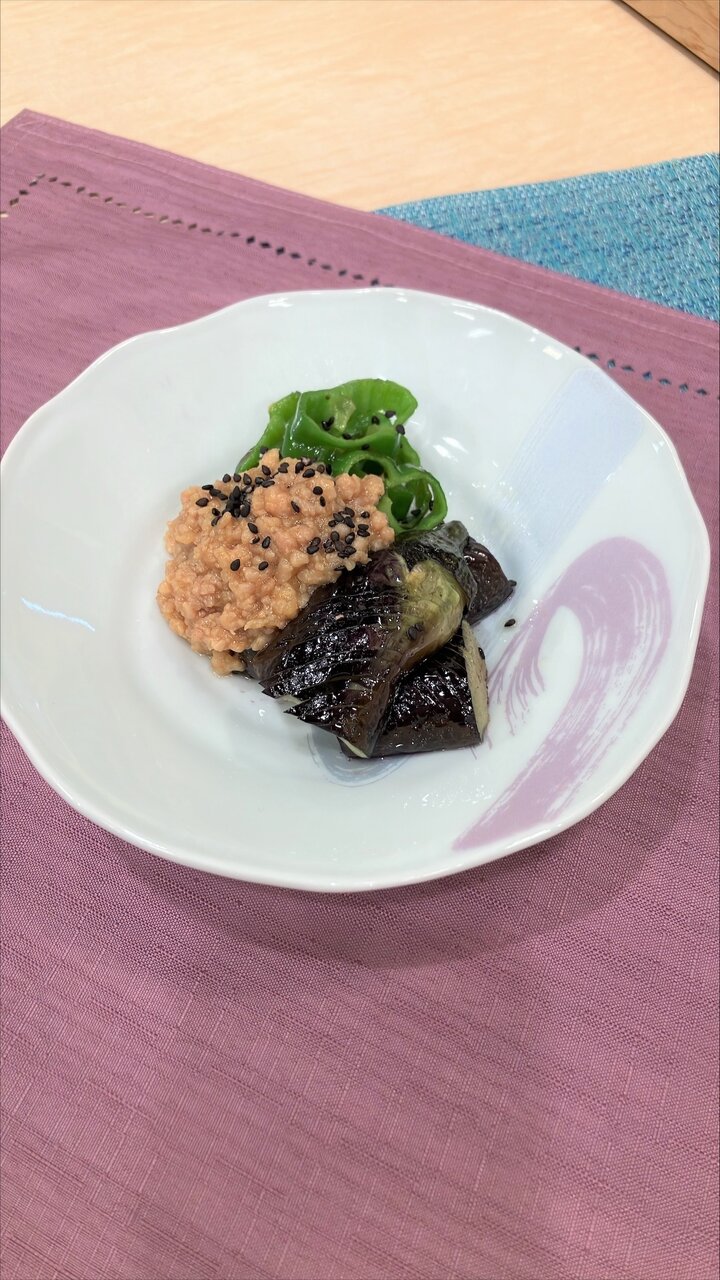 今回はそぼろと合わせることでなすのうまみを引き立てました。