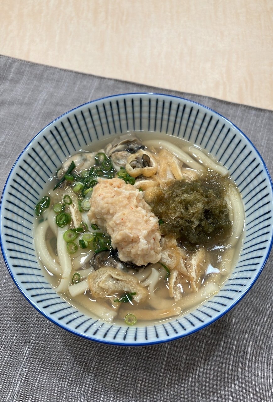 旬のカキと出汁でやさしく煮含めたうどんに、酒粕とみそを合わせた特製の酒粕みそを添えた一品です。