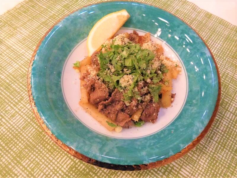 「ポテトと牛肉のソテー 春菊の香りをのせて」について