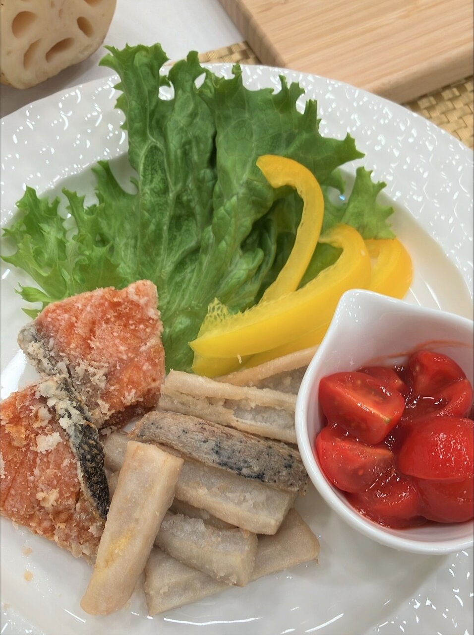 【家庭的で食べやすい】れんこんの食感と鮭の旨みを楽しめる♪「れんこんと鮭のから揚げ トマトソース添え」1/27(火)放送 中島先生のレシピ
