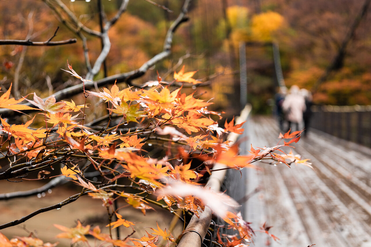 特に「鷹の巣吊り橋」近くは、清流荒川・山々の紅葉、さらに風情のあるつり橋を一緒に眺められる必見のスポット!