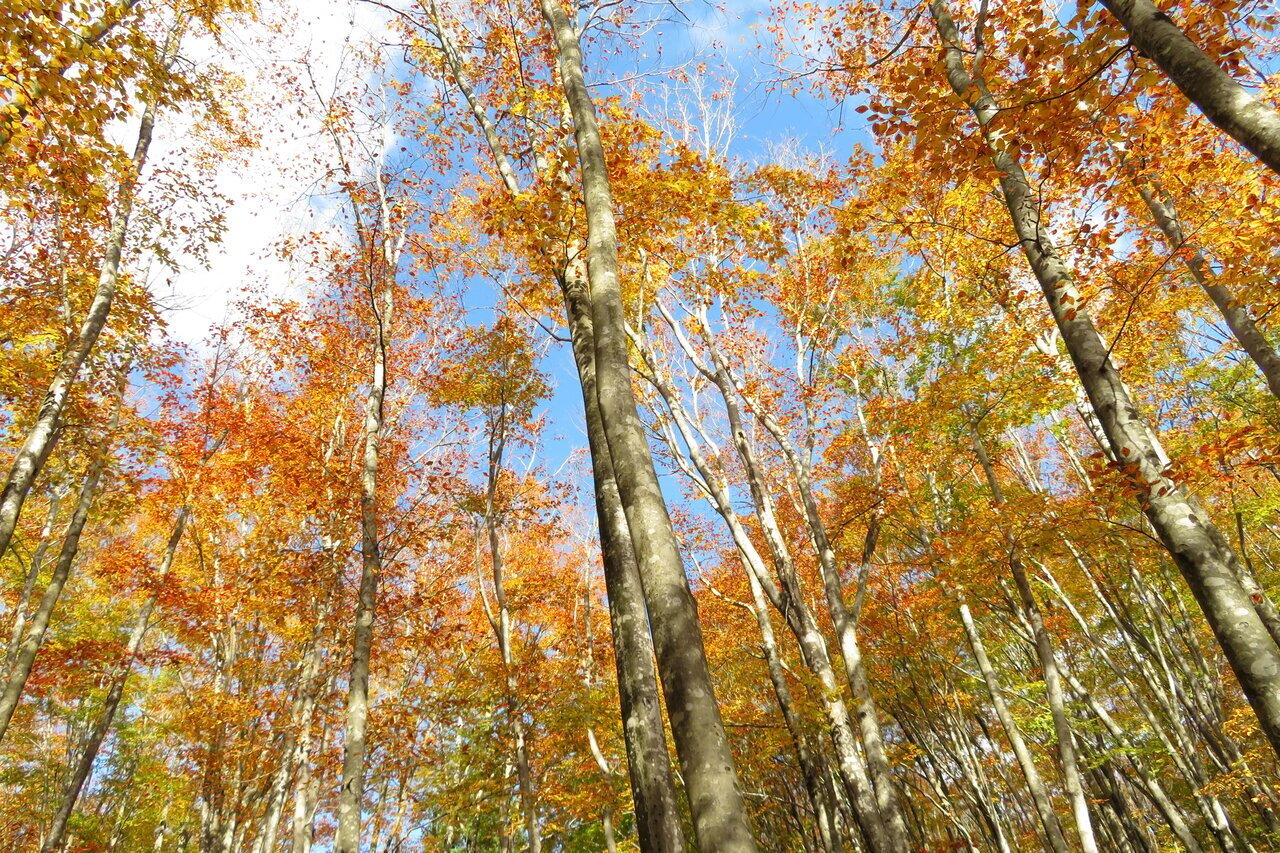 大正末期、木炭にするため全て伐採され裸山となったその後、ブナが一斉に芽生えて成長し、現在の姿になったと言われています。