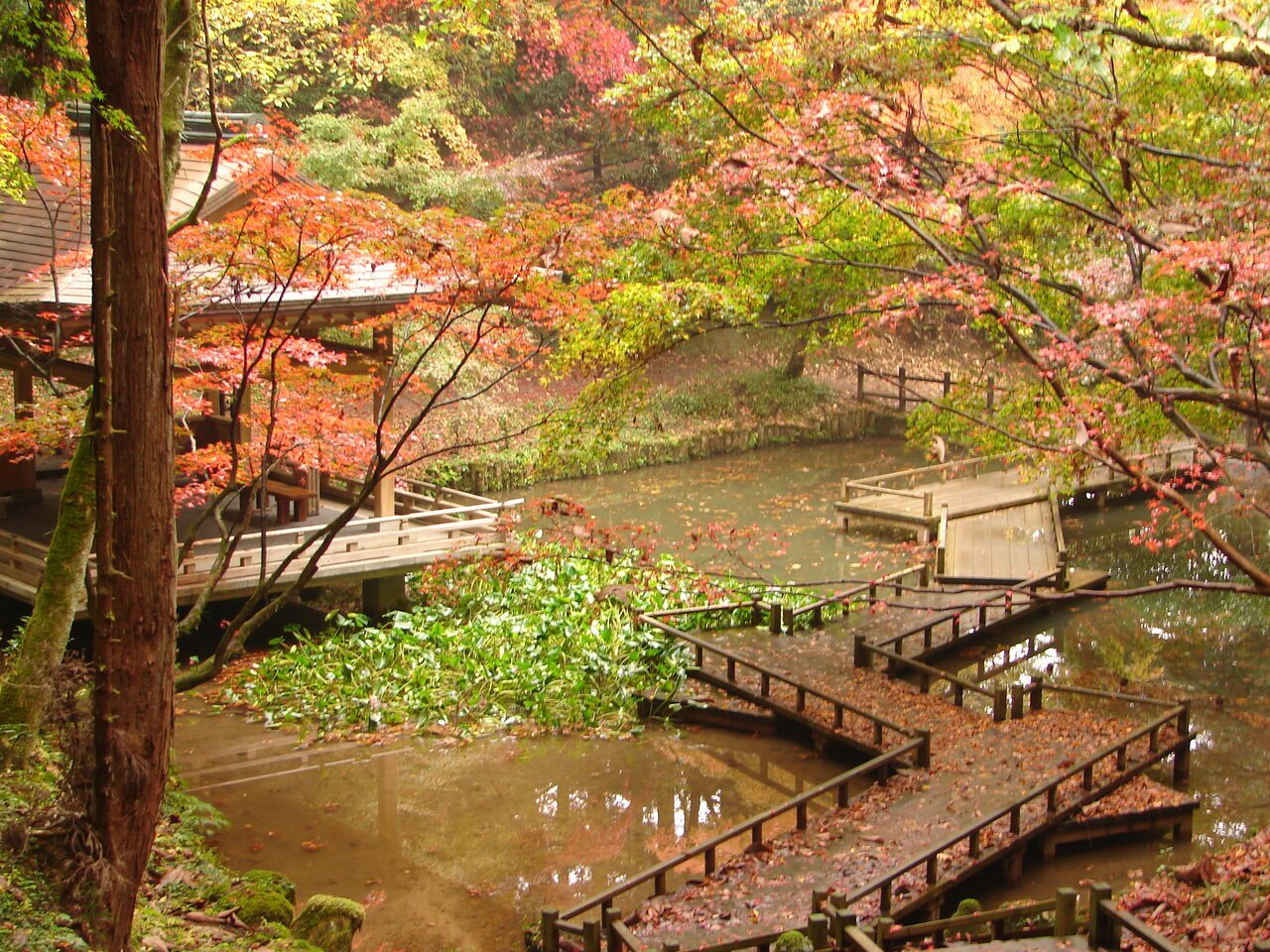 園内に多数のスポットがあるのが特徴の公園ですが、紅葉を楽しむには「池の端」と「モミジ谷」がオススメ。